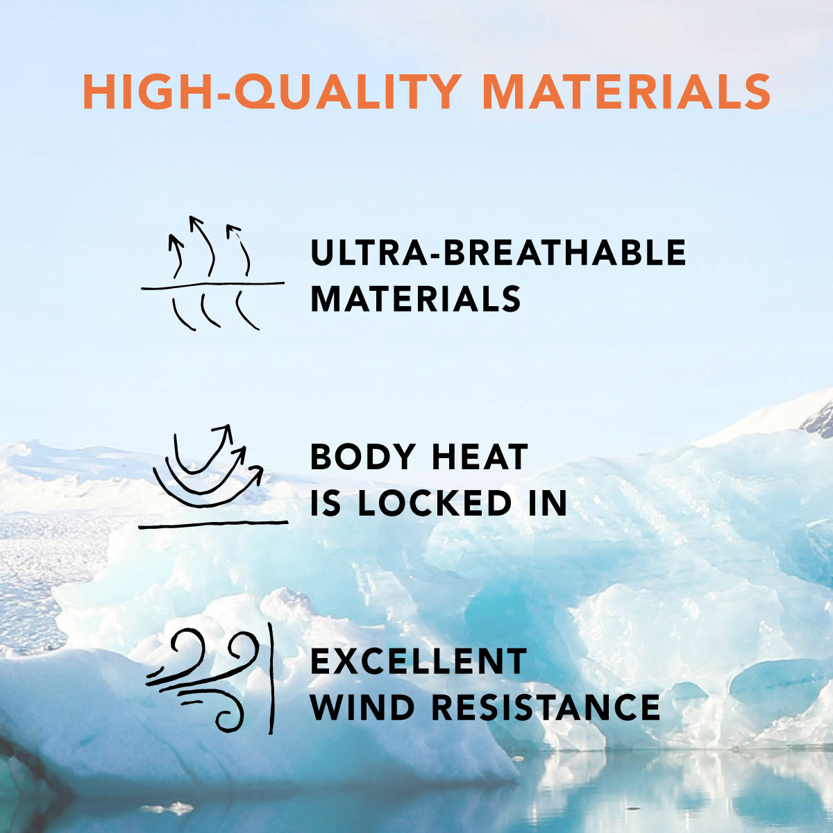 Our snowsuits are designed with high-quality materials that combine breathability, warmth, and wind resistance for optimal performance.