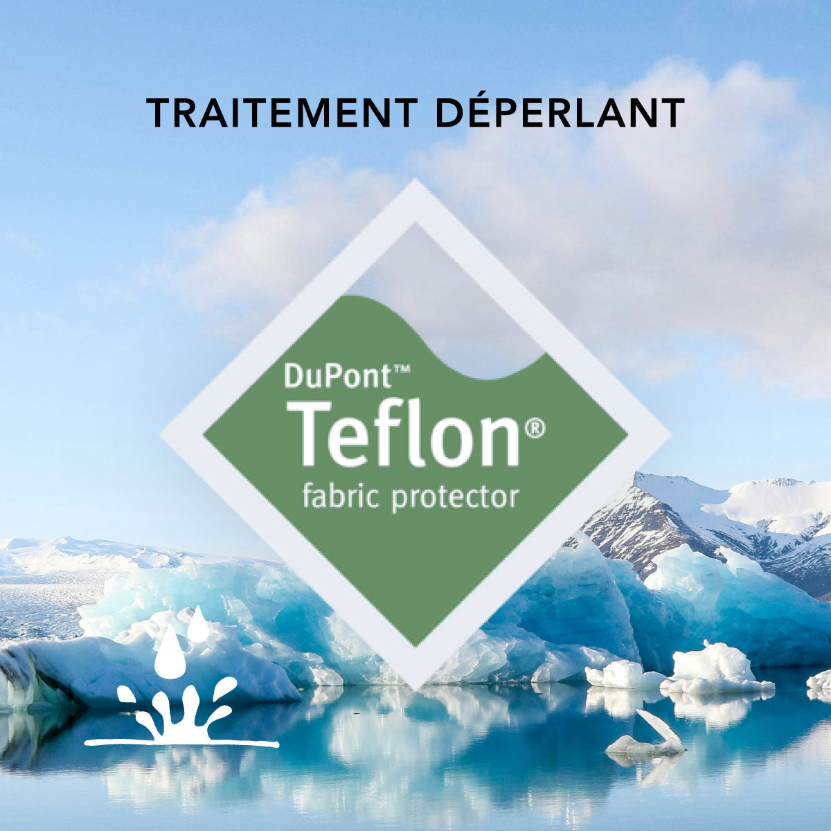 Traitement Teflon® déperlant et antitaches qui aide à repousser l’eau, la neige et la saleté.