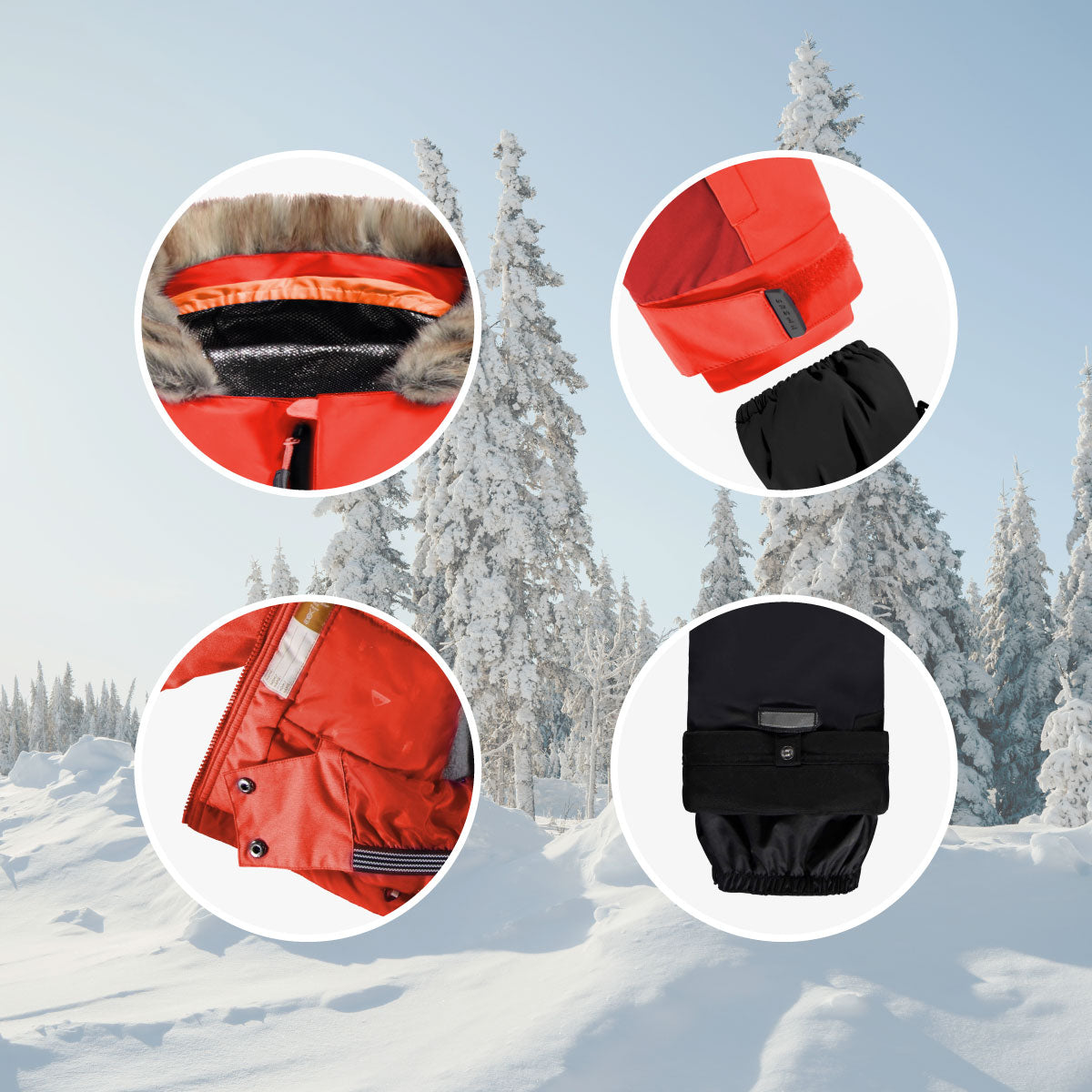 Poignets, chevilles et taille ajustables pour une meilleure protection contre l’infiltration de neige.