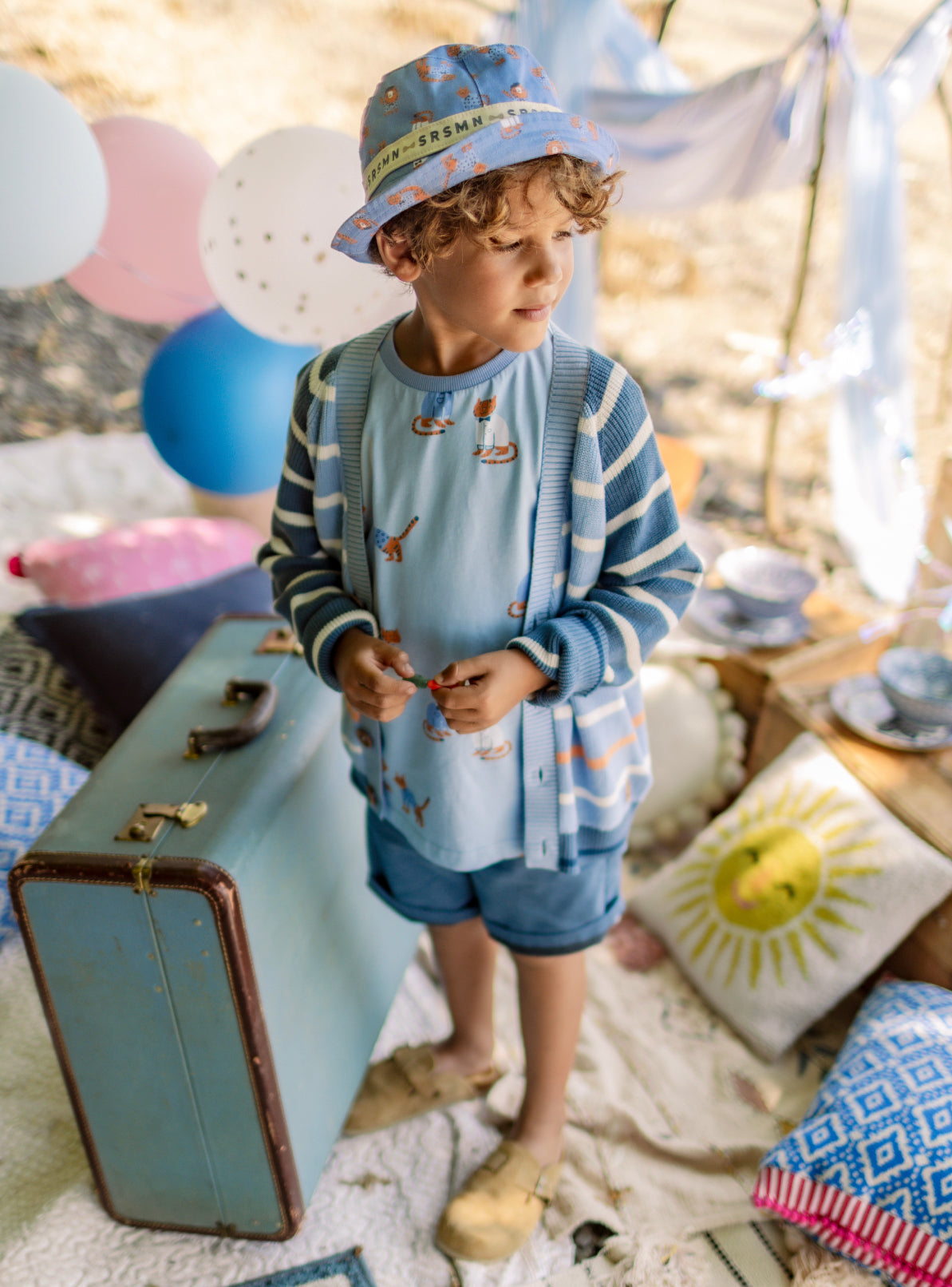 Baignée de douceur et de lumière, cette collection sera un coup de cœur assuré. Nuances de bleu, teintes neutres et motifs de tigres s’harmonisent pour créer des tenues à la fois modernes et intemporelles. Confort et style sont au rendez-vous pour accompagner votre garçon du quotidien aux occasions spéciales.