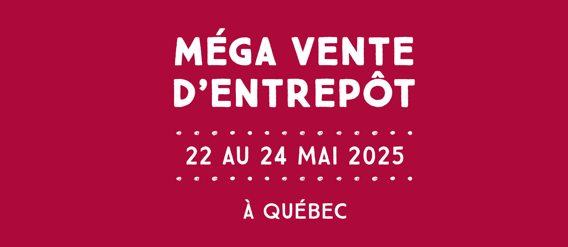 * Prenez note que tous les articles achetés lors de la méga vente d'entrepôt sont considérés comme des ventes finales.
