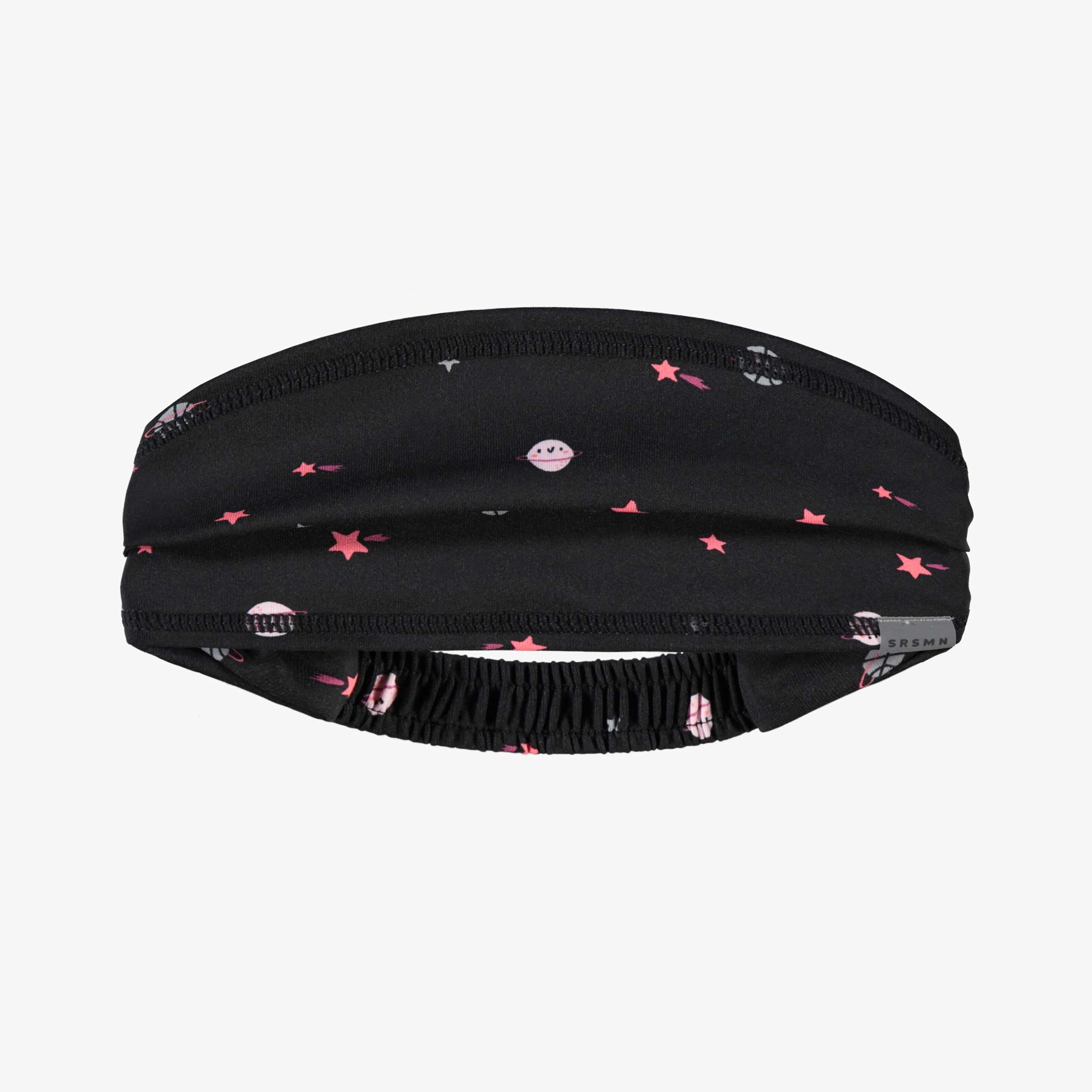 Bandeau noir en lycra avec des motifs d’étoiles et de planètes. On y retrouve un élastique à l’arrière pour un meilleur ajustement sur la tête de votre enfant. À agencer avec la camisole et le legging assortis.