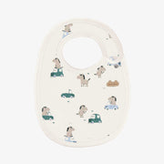 Bavoir crème à motifs de chevaux et voitures, naissance