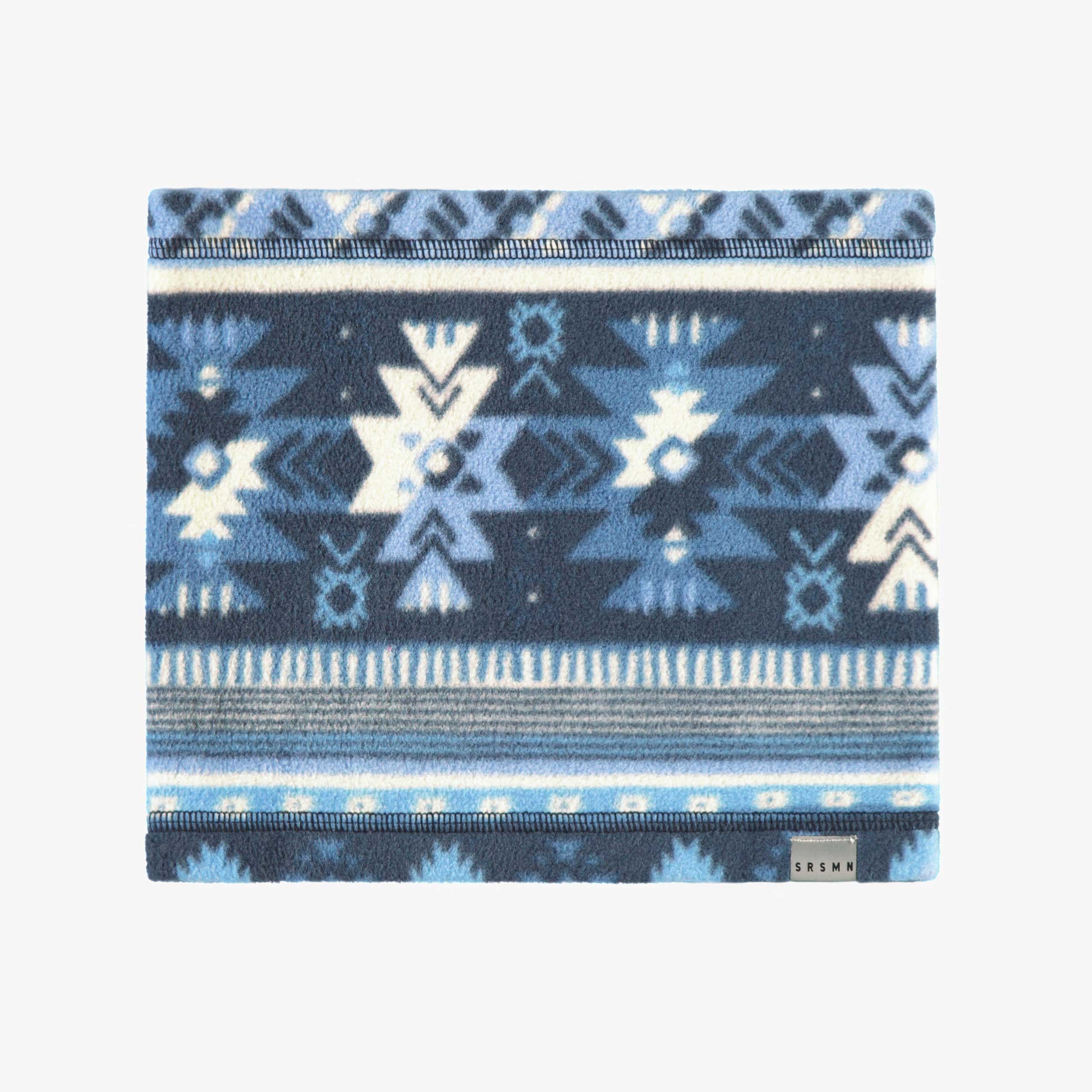 Cache-cou bleu en polar avec des motifs à porter avec la veste, la tuque et les mitaines assorties. Cet accessoire pratique apportera une bonne dose de chaleur à votre bébé.