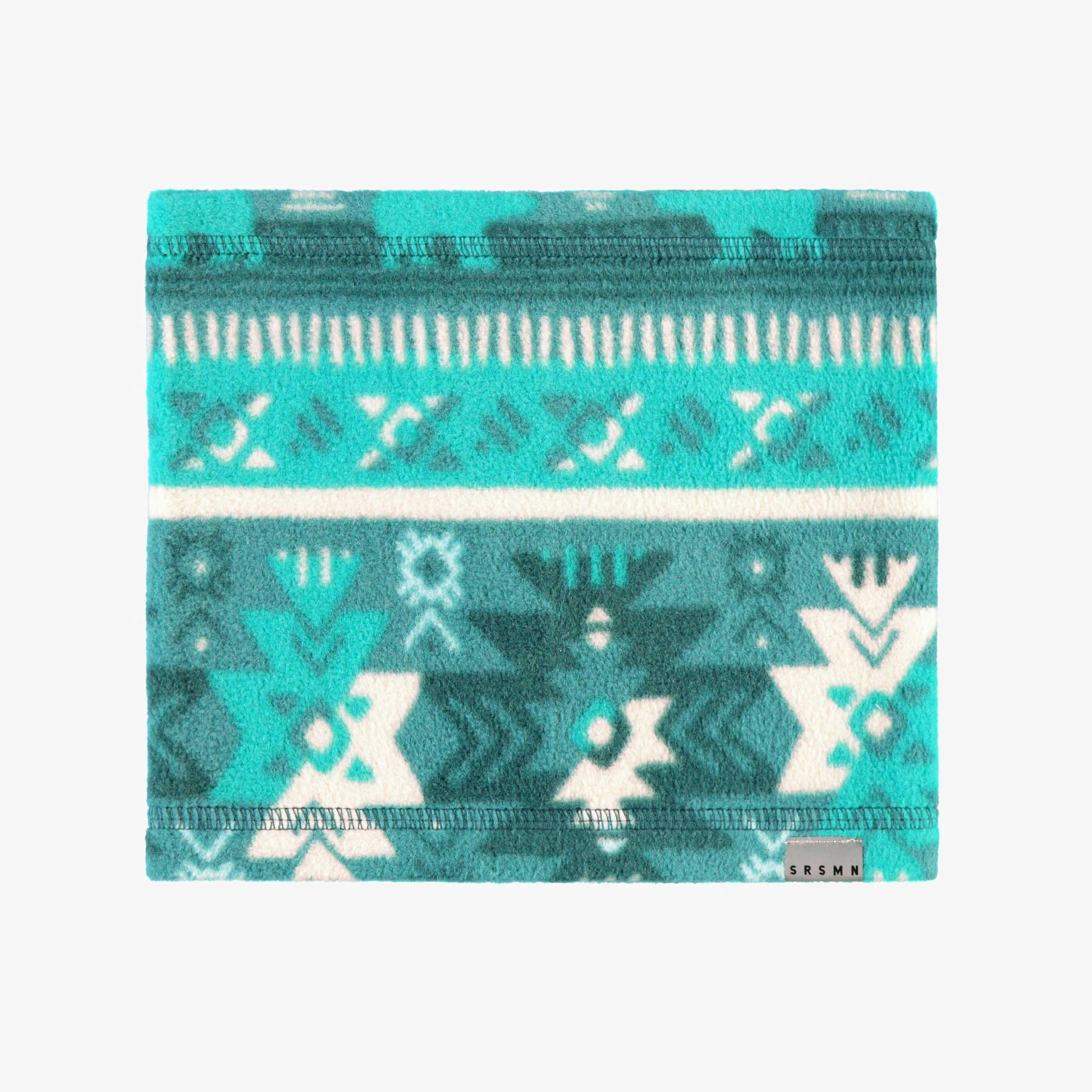 Cache-cou turquoise en polar avec des motifs à porter avec la veste, la tuque et les mitaines assorties. Cet accessoire pratique apportera une bonne dose de chaleur à votre bébé.