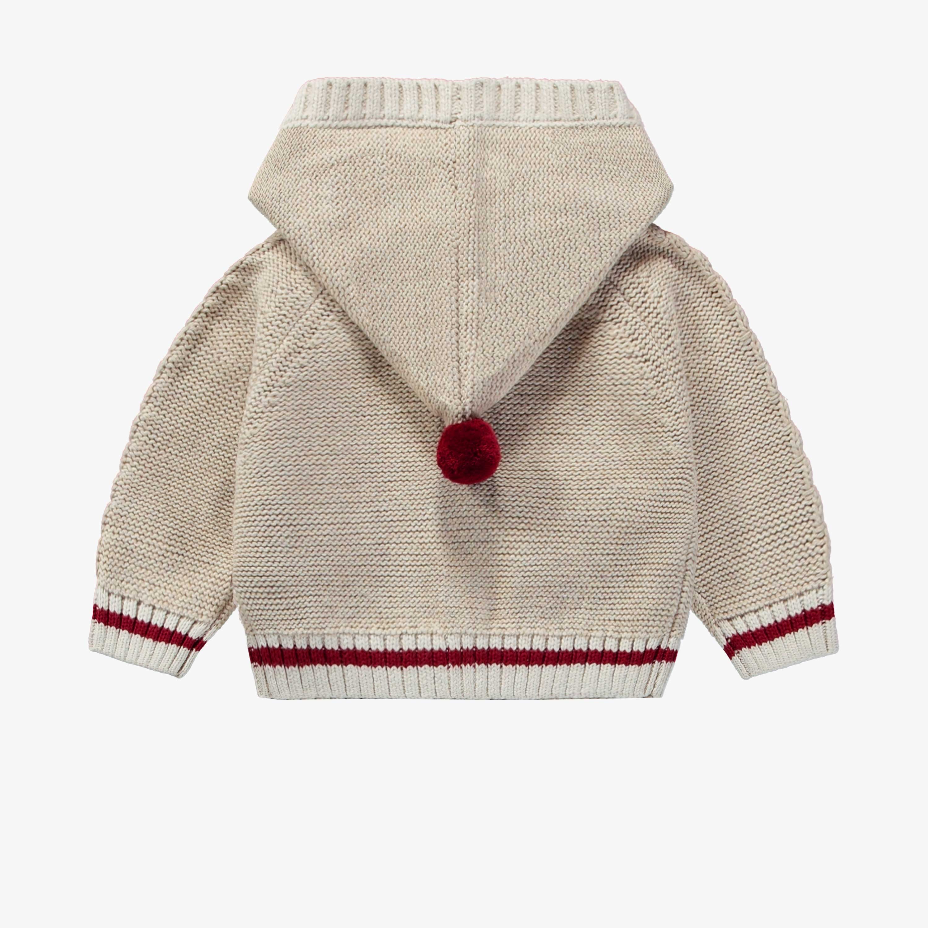 Cardigan en tricot beige avec motifs tressés avec capuchon, naissance
