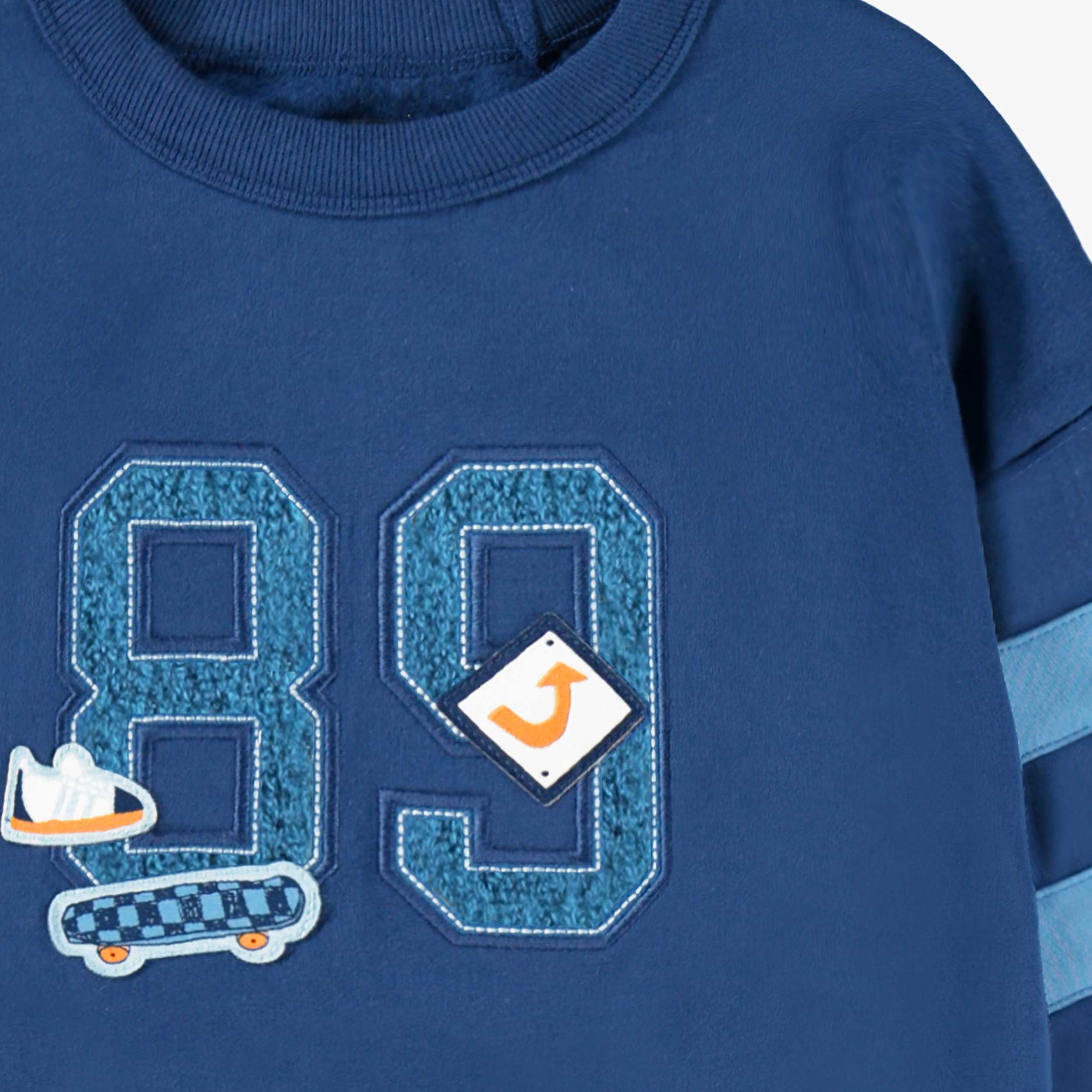 Chandail bleu en molleton avec broderie d’un numéro pour un look totalement sportif! Col rond, poignets et bas du chandail en tricot côtelé pour un meilleur ajustement. Doux molleton Coupe régulière Manches longues Col rond Poignets et bas du chandail en tricot côtelé