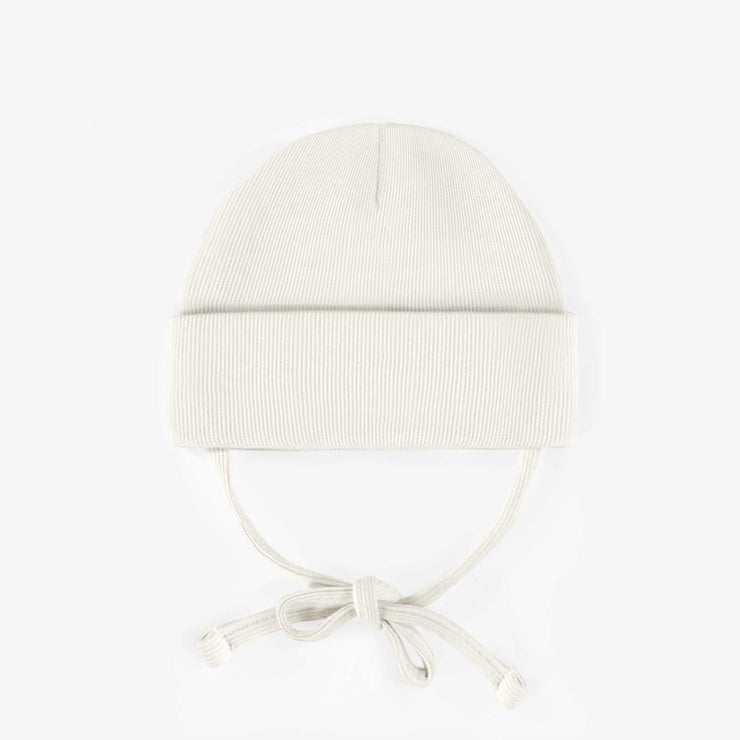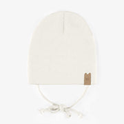 Chapeau crème d’extérieur avec cordons en tricot côtelé, bébé