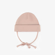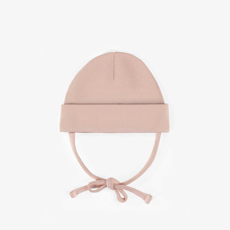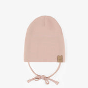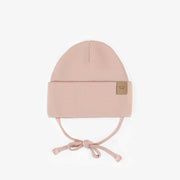 Chapeau rose d’extérieur avec cordons en tricot côtelé, naissance
