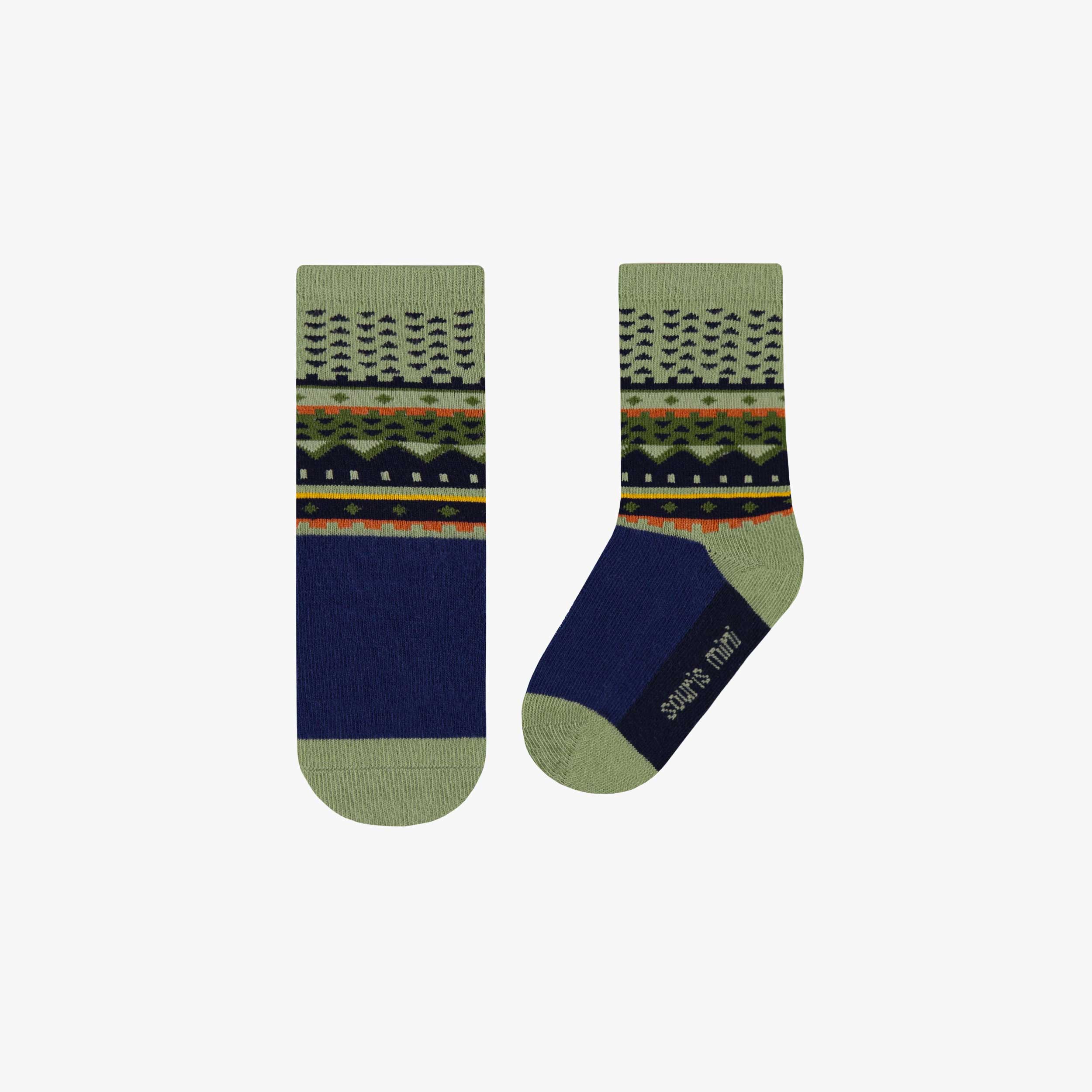 Chaussettes bleues et vertes avec motifs et rayures, bébé