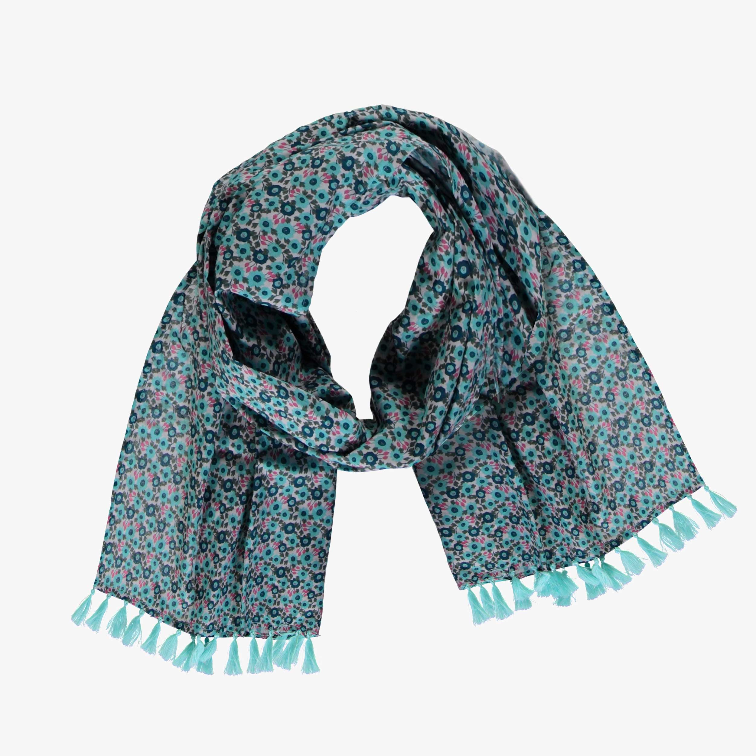 Foulard bleu-turquoise à motif floral en voile, enfant