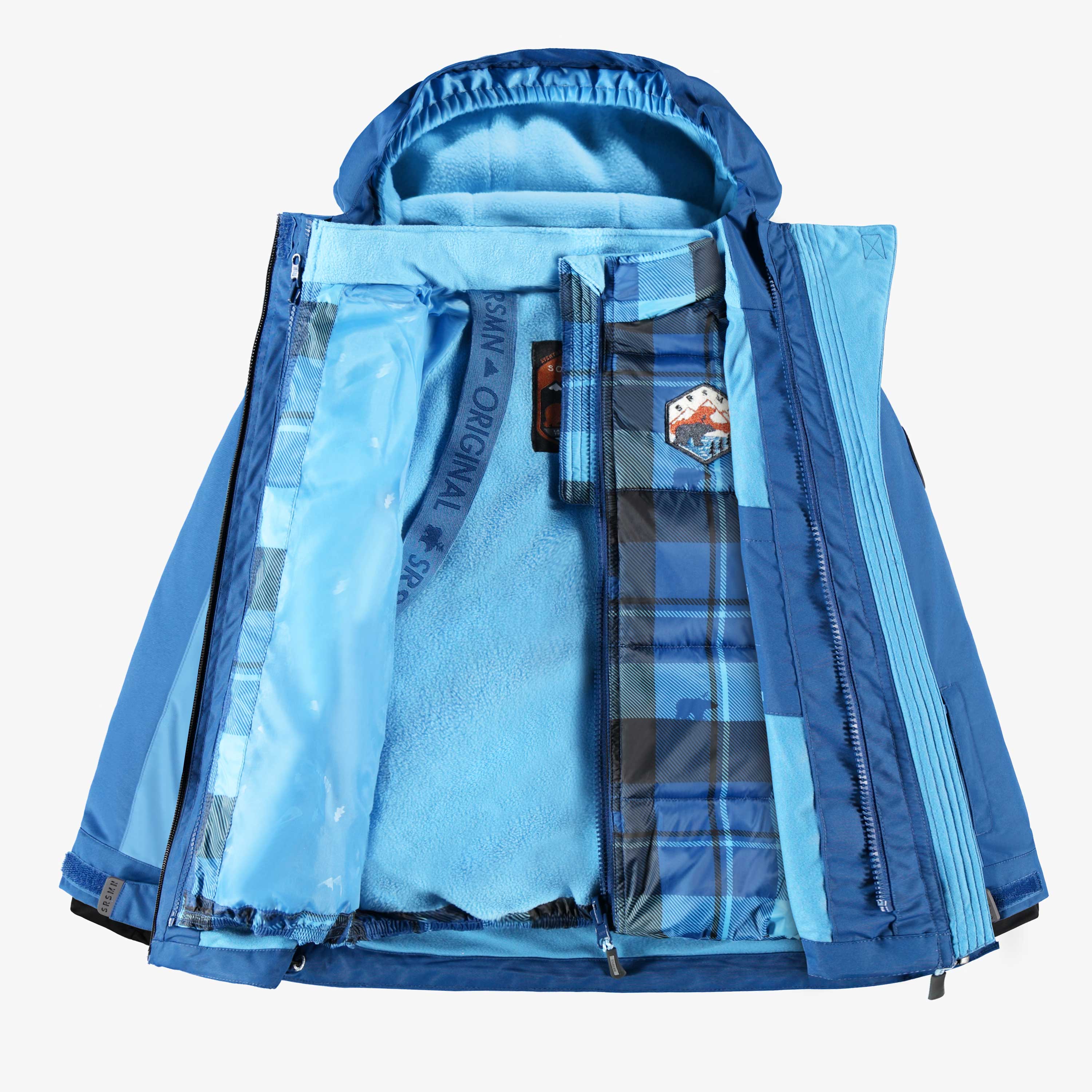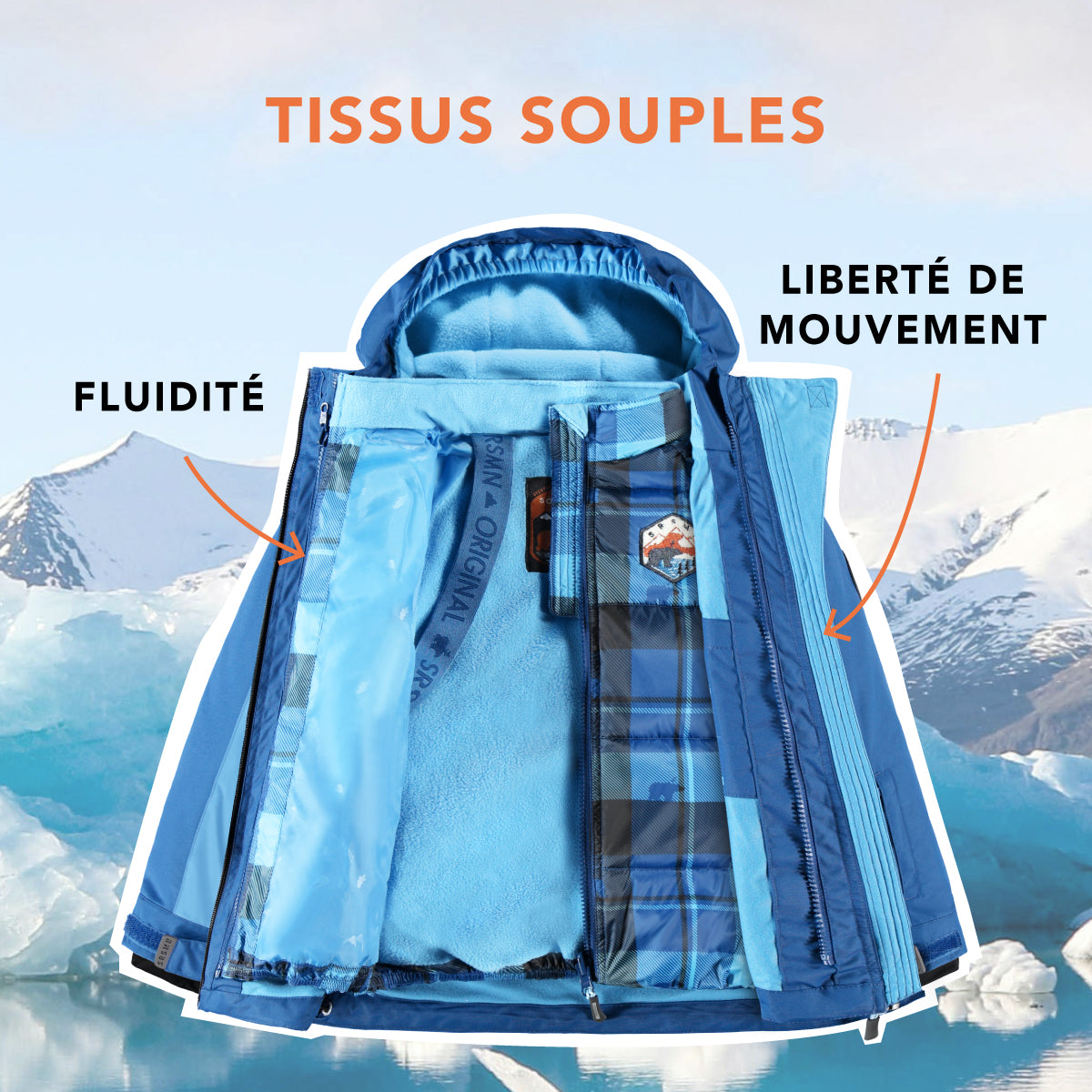 Habit de neige 3 en 1 bleu, carreaux et noir, enfant