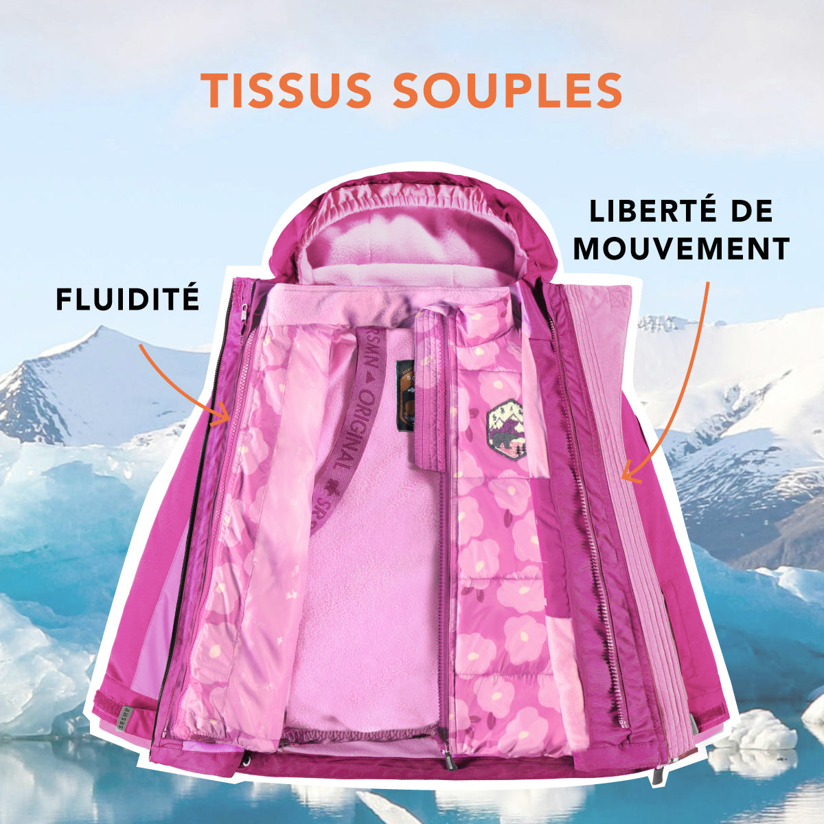 Habit de neige 3 en 1 mauve, floral et noir, enfant