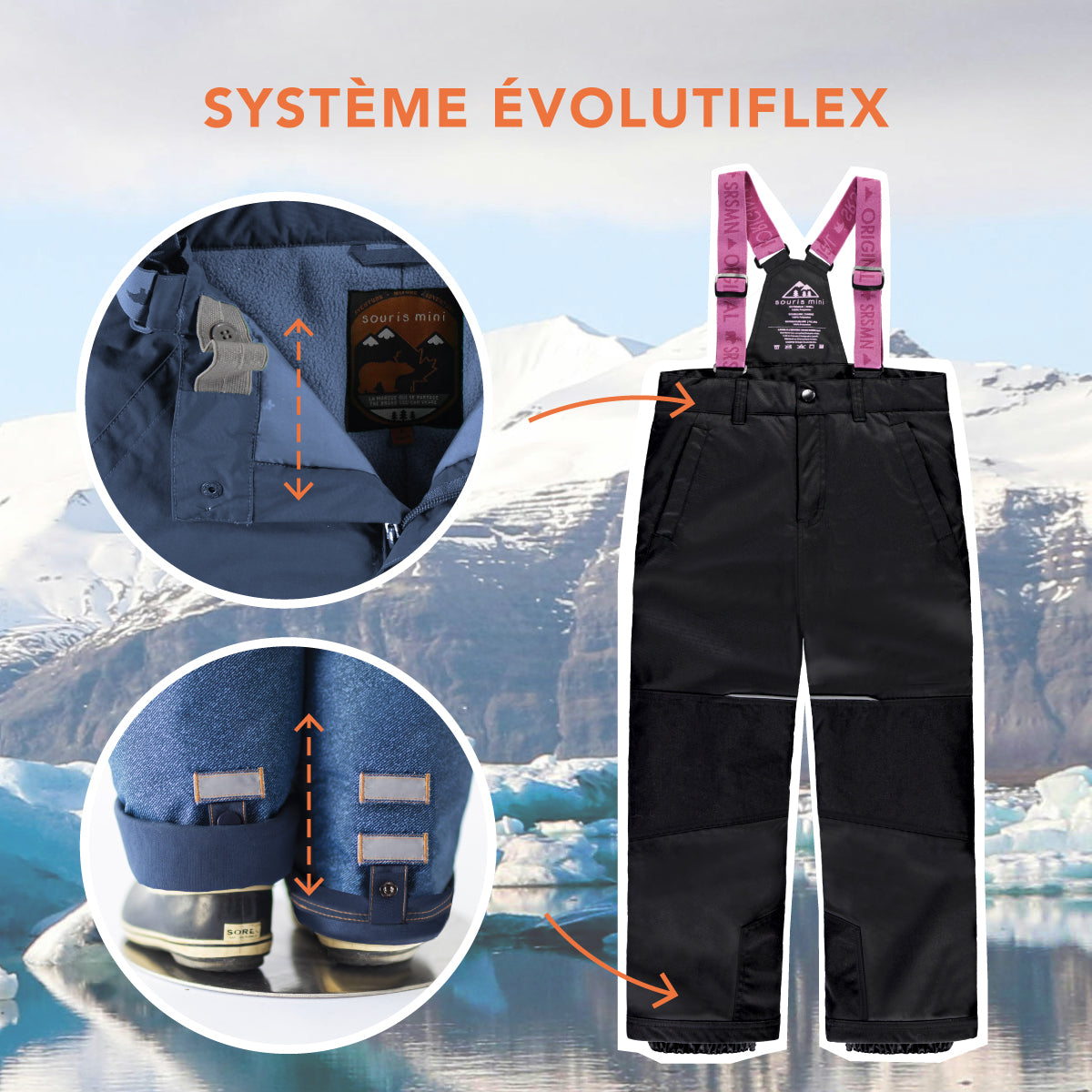 Avec notre système EVOLUTIFLEX, vos habits de neige seront portés plus longtemps! Les manches, les jambes et la taille offrent plusieurs ajustements.