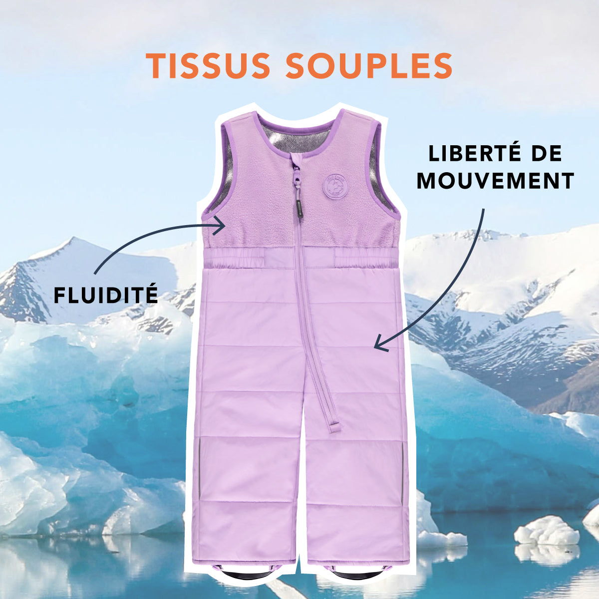 Nous utilisons des matériaux de qualité comme notre tissu imperméable 20 000 mm qui permet de rester au sec lors des activités hivernales.