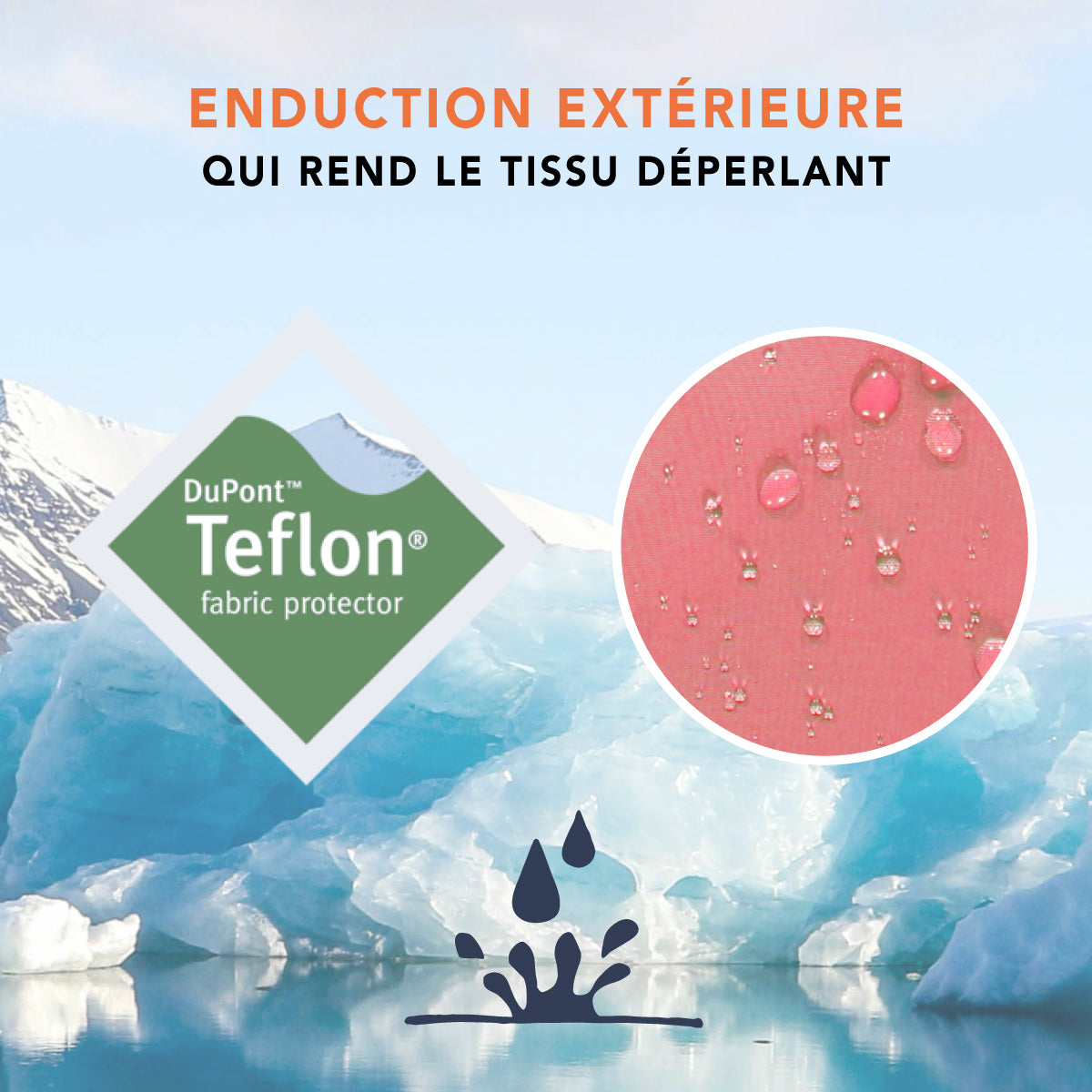 Nous utilisons des matériaux de qualité comme notre tissu imperméable 20 000 mm qui permet de rester au sec lors des activités hivernales.