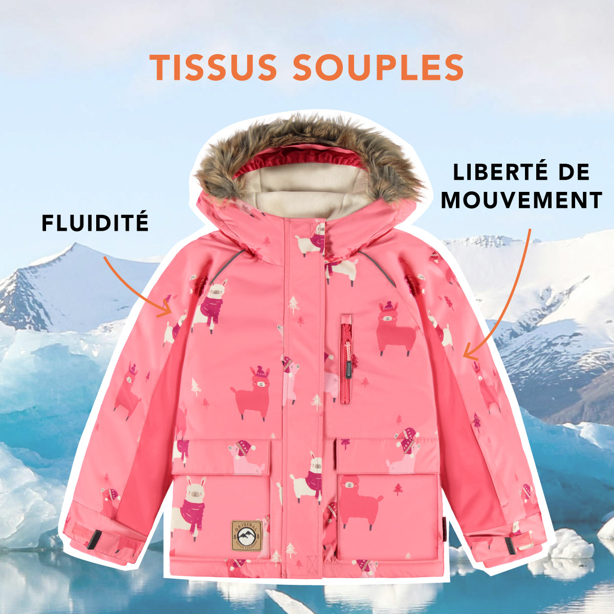 Habit de neige deux pièces rose à motifs de lamas, enfant