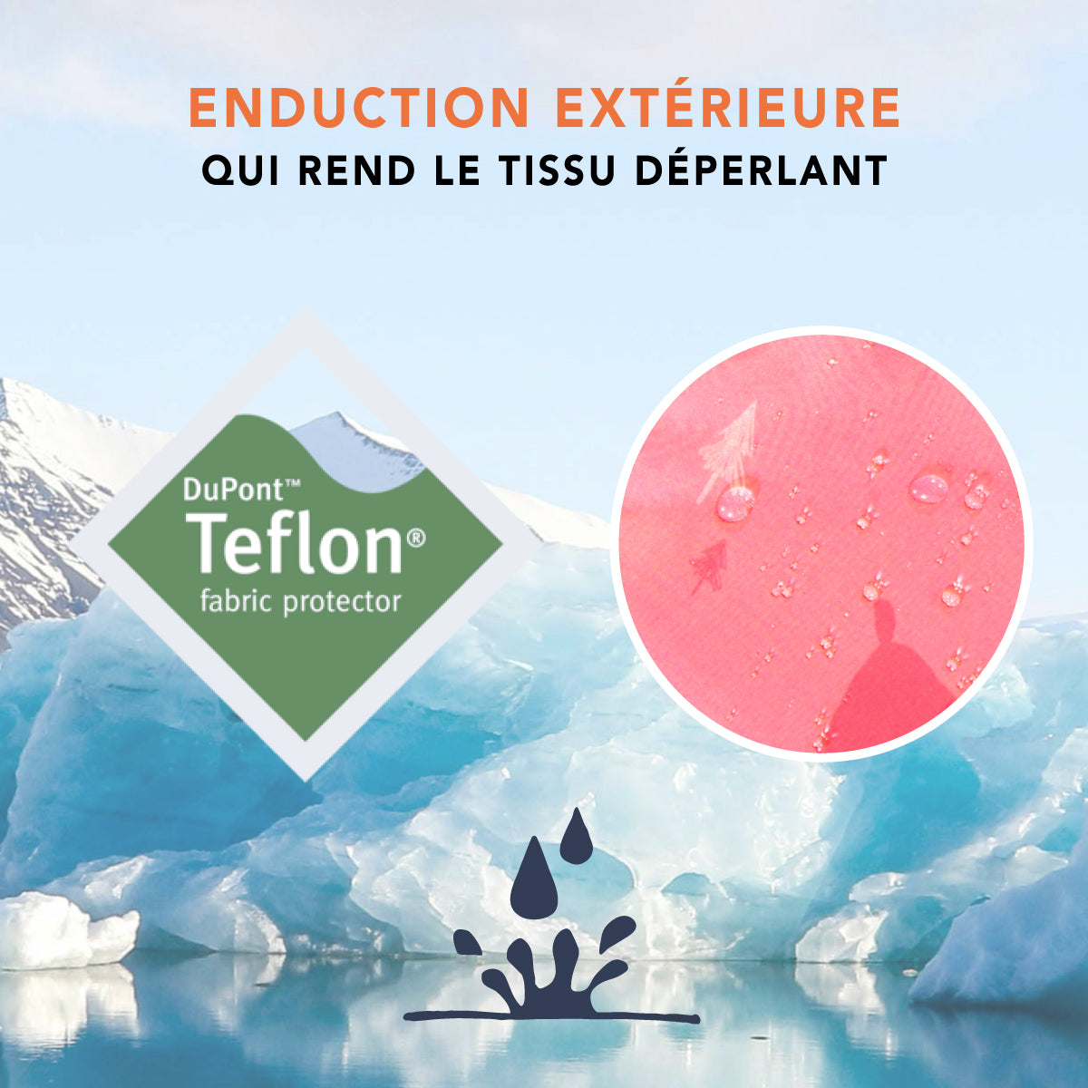Nous utilisons des matériaux de qualité comme notre tissu imperméable 20 000 mm qui permet de rester au sec lors des activités hivernales.