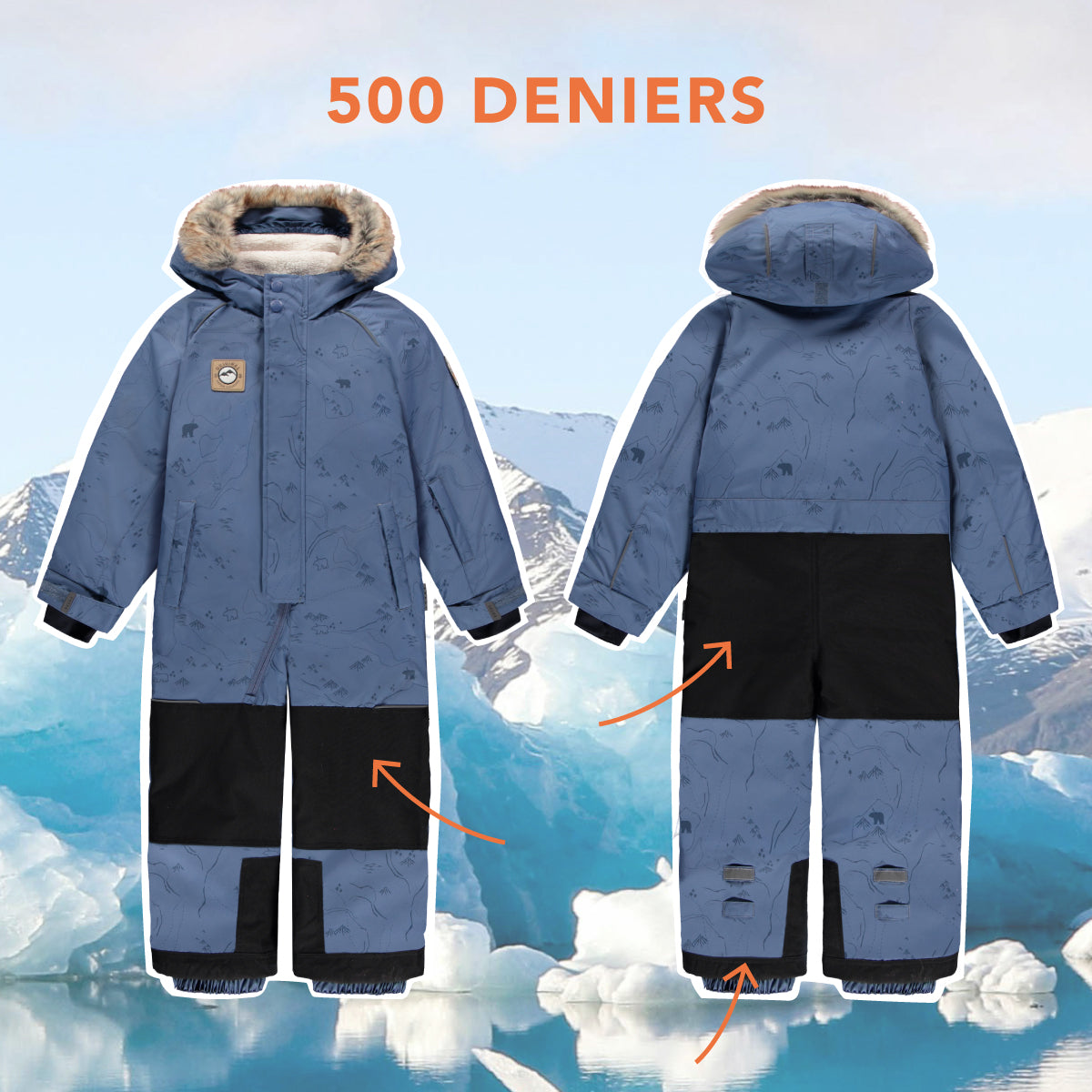 Des renforts ont été ajoutés aux genoux, fessier et chevilles, afin d'offrir à l'habit de neige une meilleure durabilité.