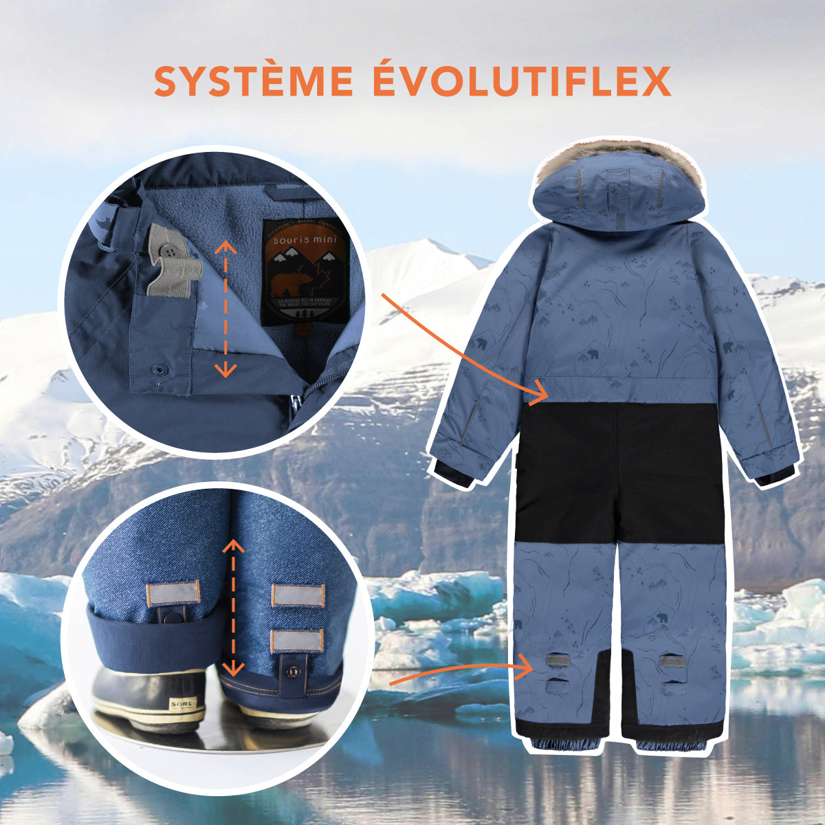 Avec notre système EVOLUTIFLEX, vos habits de neige seront portés plus longtemps! Les manches, les jambes et la taille offrent plusieurs ajustements.