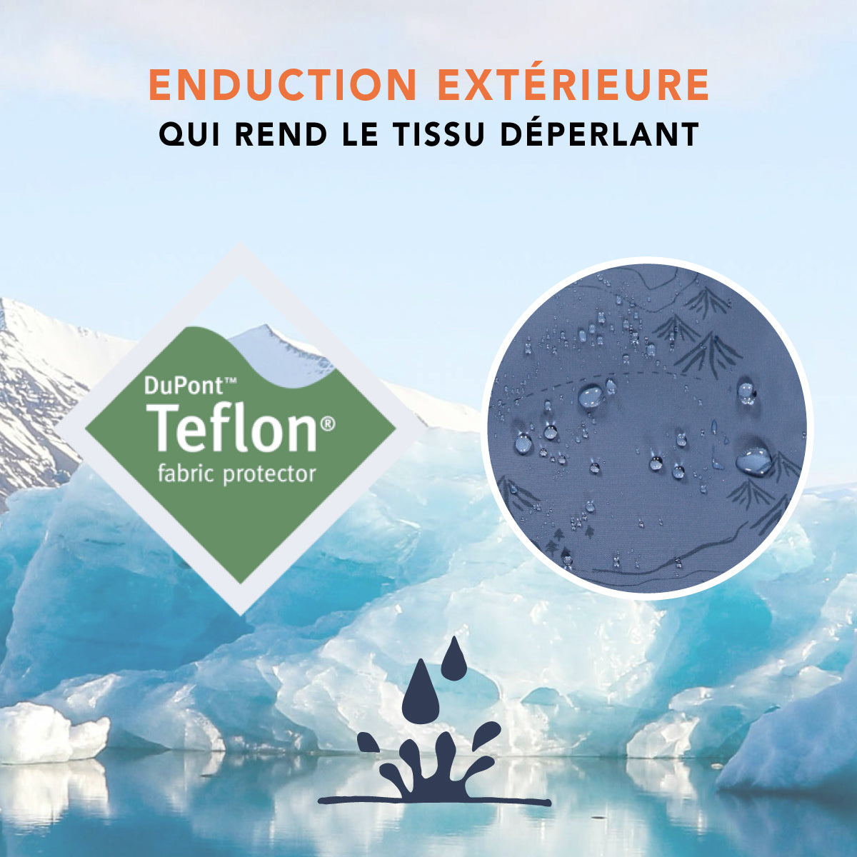 Nous utilisons des matériaux de qualité comme notre tissu imperméable 20 000 mm qui permet de rester au sec lors des activités hivernales.