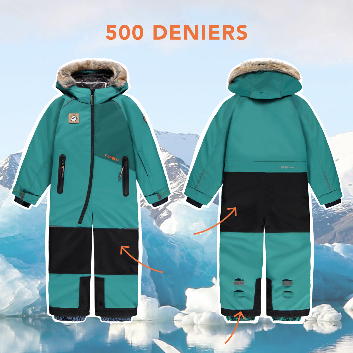 Nous utilisons des matériaux de qualité comme notre tissu imperméable 20 000 mm qui permet de rester au sec lors des activités hivernales.