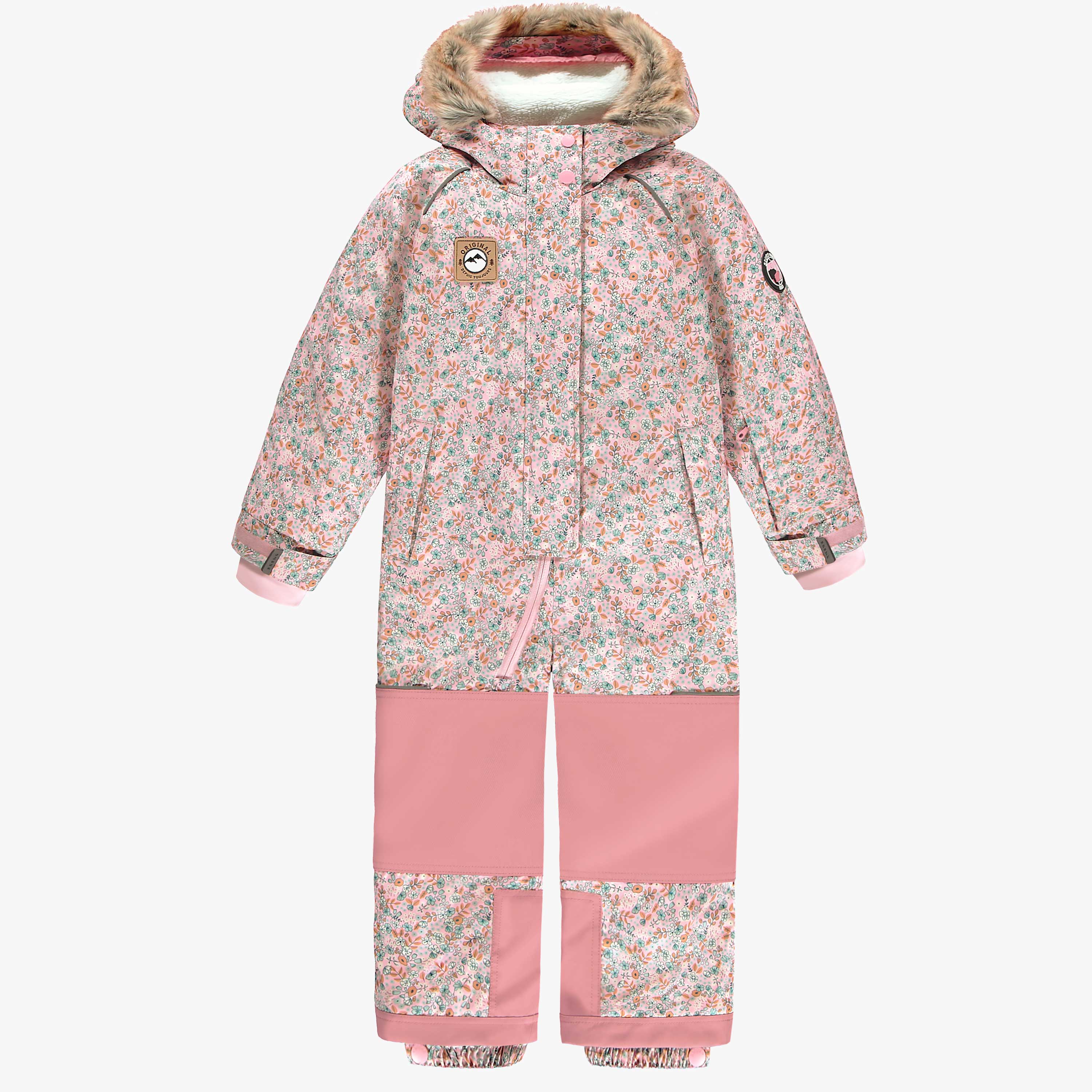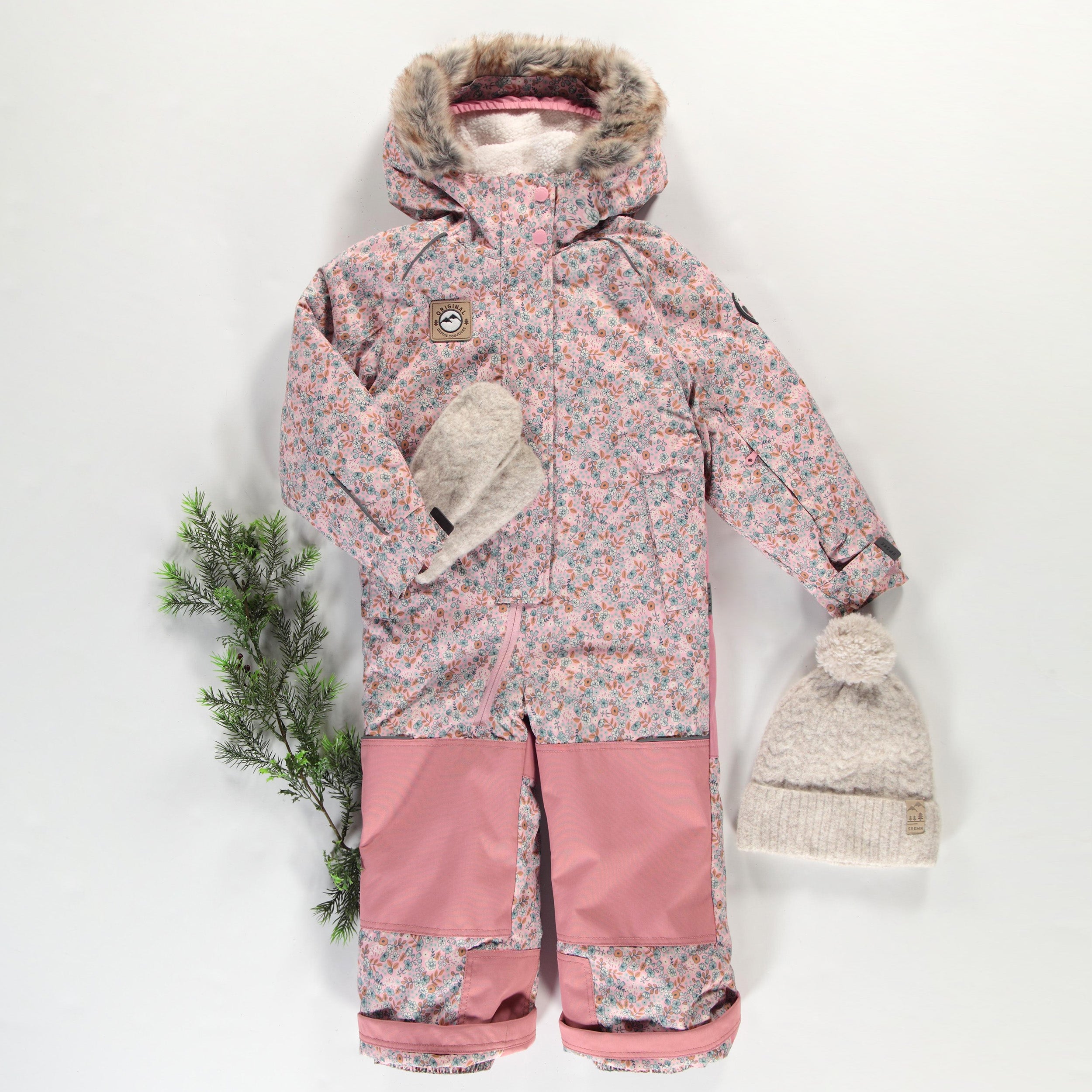 Habit de neige une pièce rose avec fleurs, enfant