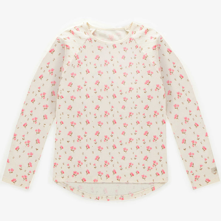 Haut de pyjama crème avec un motif fleuri rose en jersey crêpé, adulte