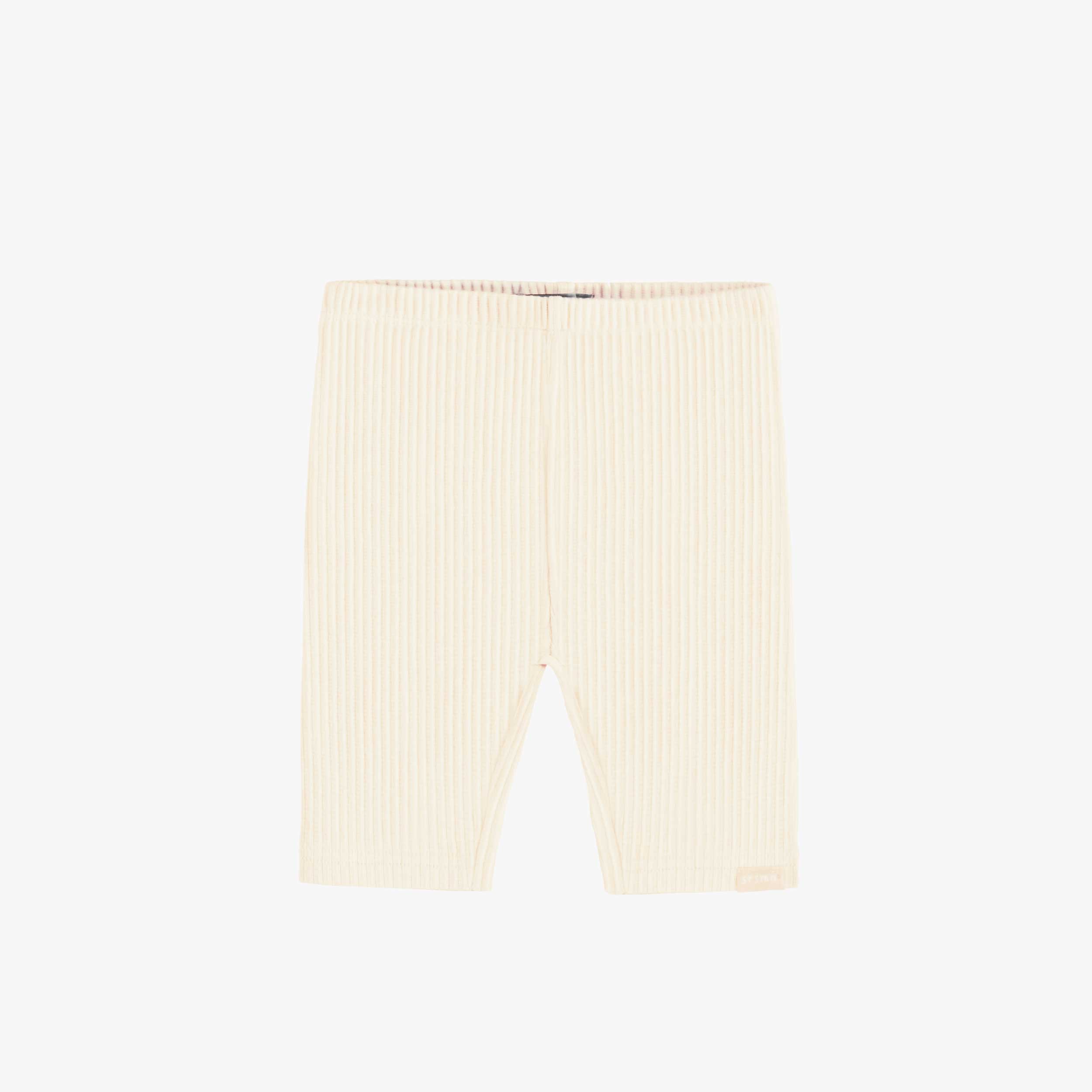 Legging crème court en tricot côtelé, coupe ajustée, taille élastique, en coton extensible.