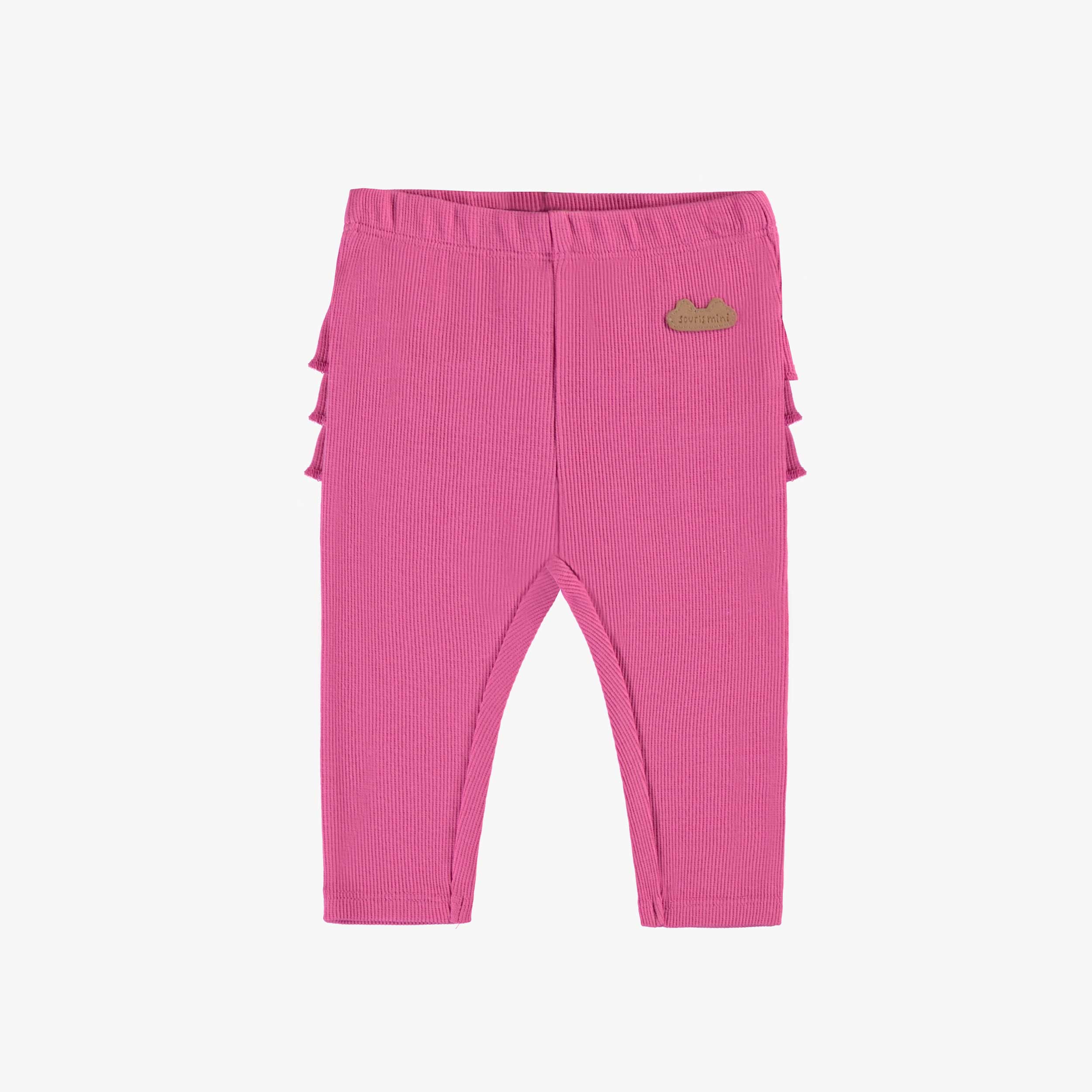 Legging fuchsia avec taille élastique fait en tricot côtelé de coton extensible, idéal pour les peaux sensibles de bébé.