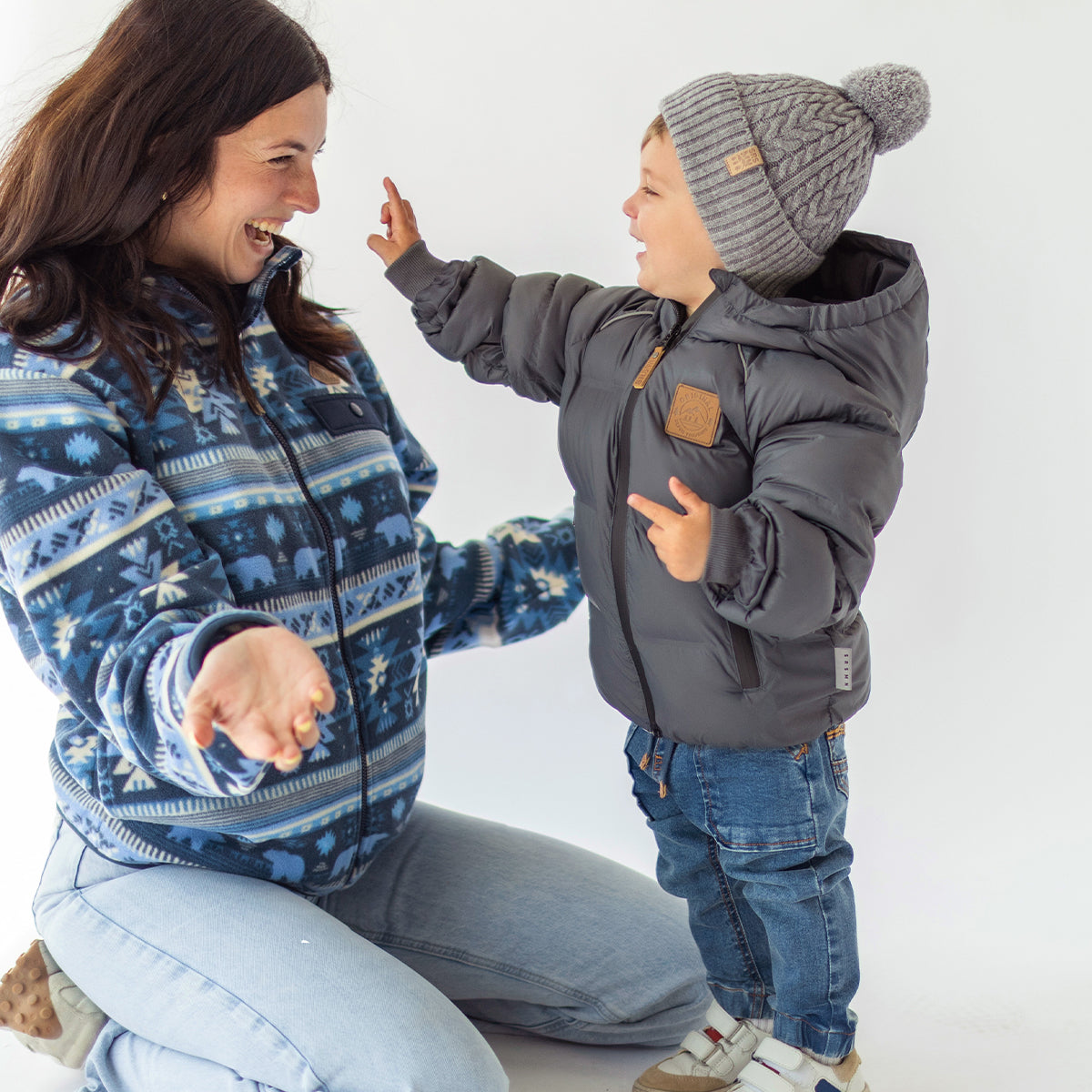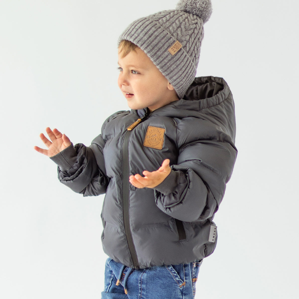 Manteau doudoune gris foncé, parfait pour les journées froides. Comprend un capuchon, des poignets en tricot côtelé et un élastique dans le bas du manteau pour une meilleure protection contre les intempéries extérieures. Muni d’une fermeture éclair et de deux poches sur les côtés.