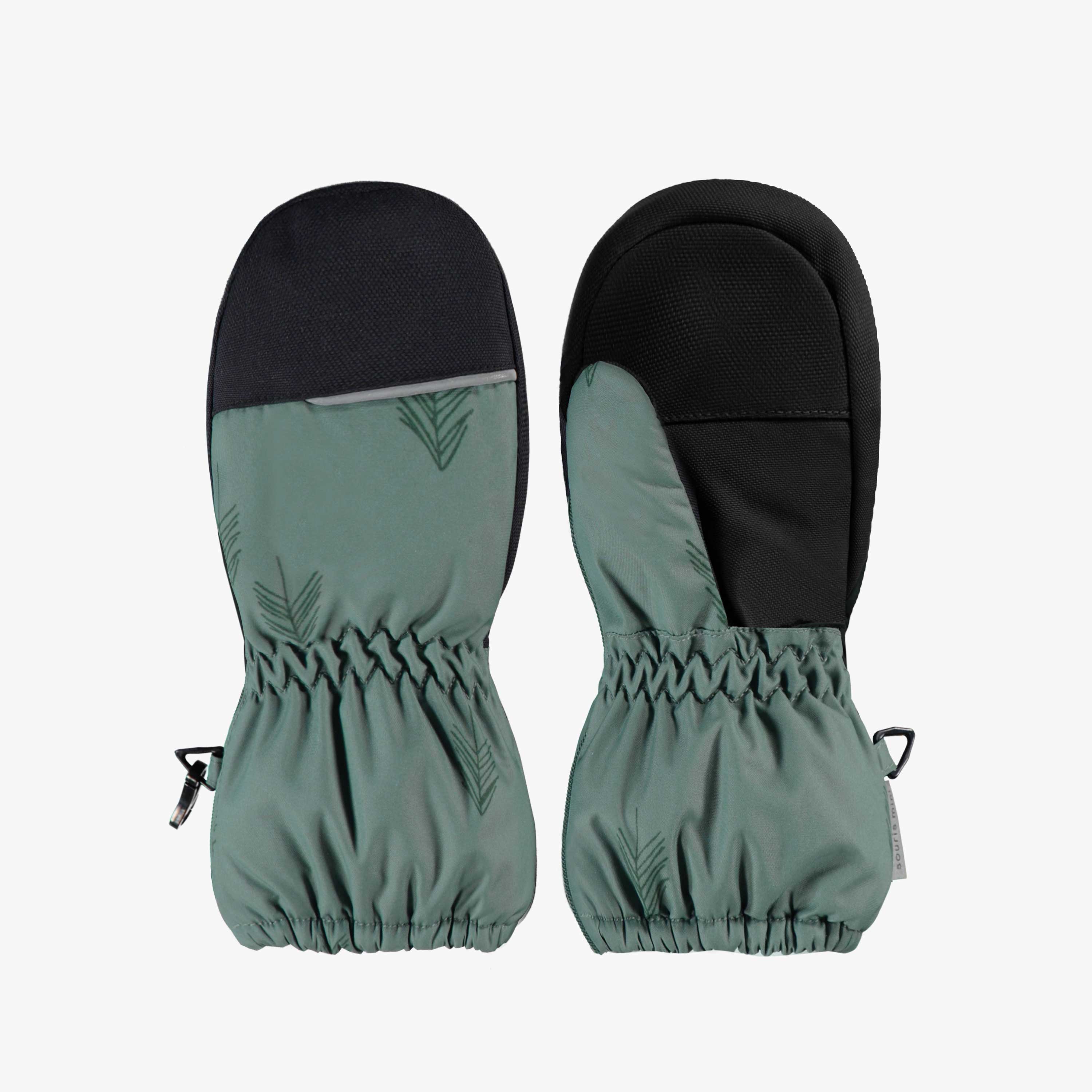 Mitaines vertes en nylon avec motifs de sapins, parfaites pour affronter les journées froides. Conçues avec un tissu extérieur résistant à l’eau et au vent, elles gardent les mains bien au sec et au chaud. L’intérieur est doublé pour un confort accru. L'élastique au poignet assure un ajustement sécuritaire et empêche la neige de pénétrer, tandis que le petit crochet permet de garder les mitaines ensemble lorsqu’elles ne sont pas portées.