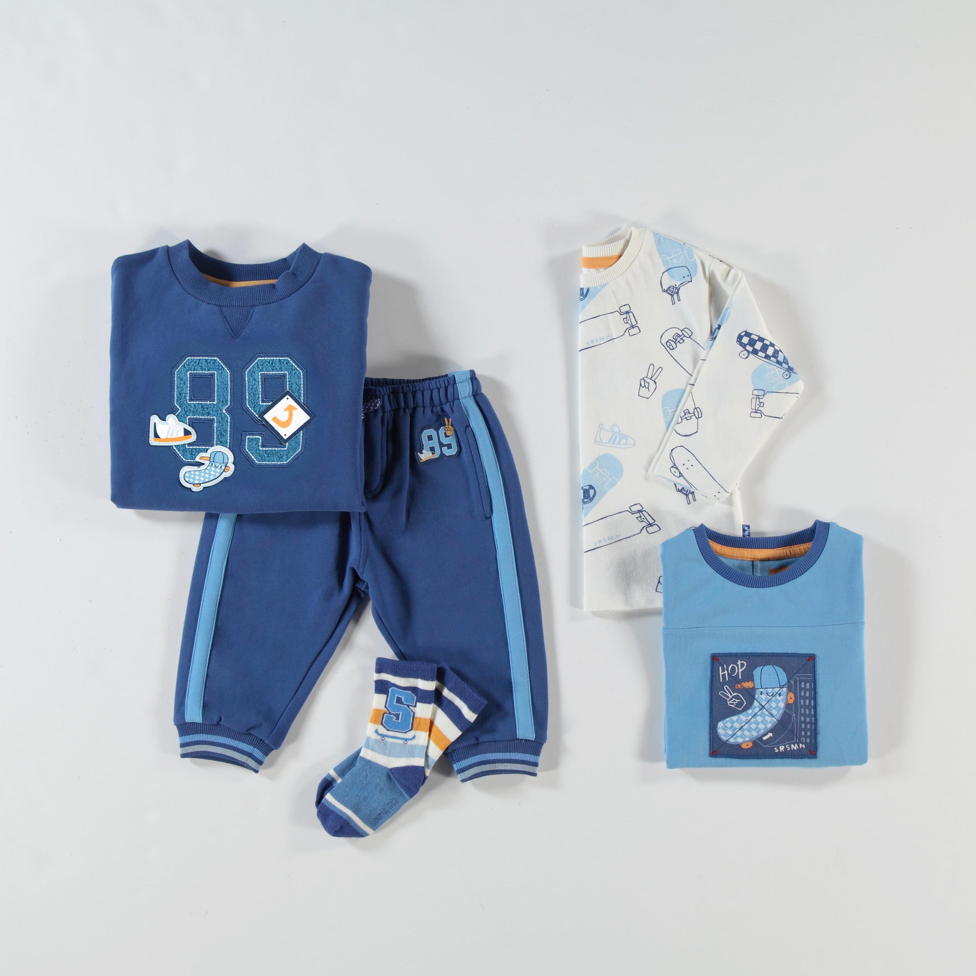 Pantalon bleu de style jogger avec petit imprimé d’un numéro. Taille élastique et chevilles en tricot côtelé pour un meilleur ajustement. Fabriqué en molleton. Doux molleton Taille élastique Chevilles en tricot côtelé Imprimé d’un numéro Coupe décontractée