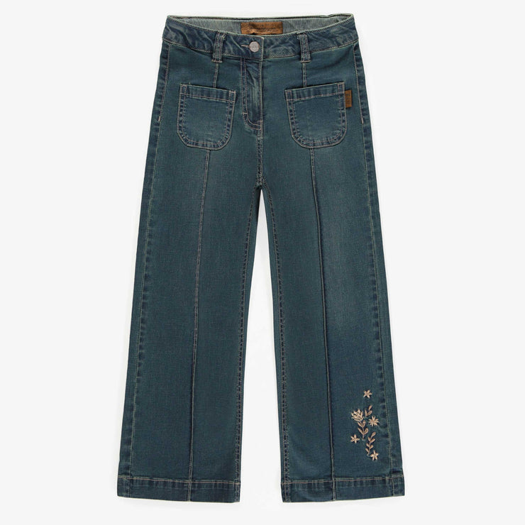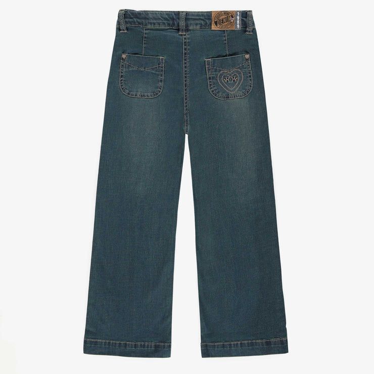 Pantalon coupe décontractée à jambes larges en denim foncé léger, enfant