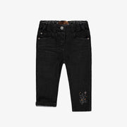 Pantalon en denim noir de coupe ajustée avec broderies, bébé
