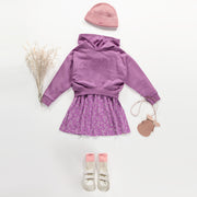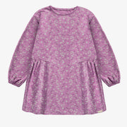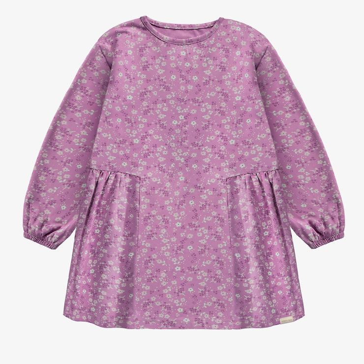 Robe de coupe évasée manches longues mauve fleuri en jersey, enfant