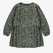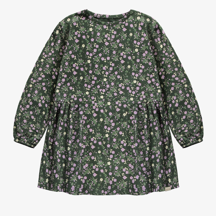 Robe de coupe évasée manches longues vert foncé fleuri en jersey, enfant