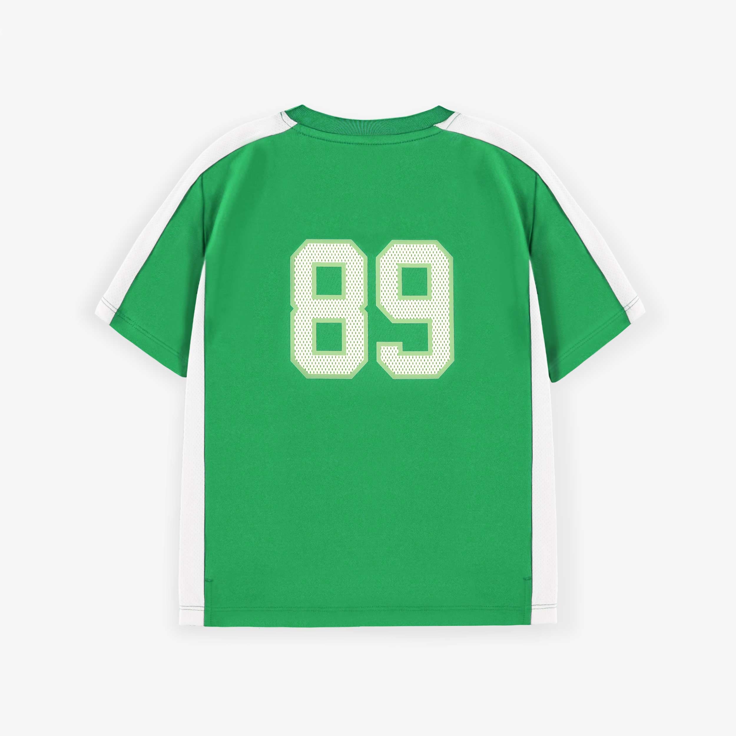 T-shirt de sport vert en tissu respirant avec un effet au sec. Comprend un col rond, des manches courtes, un imprimé à l’avant ainsi que le numéro 89 à l’arrière. Dans une coupe régulière pour un maximum de confort.