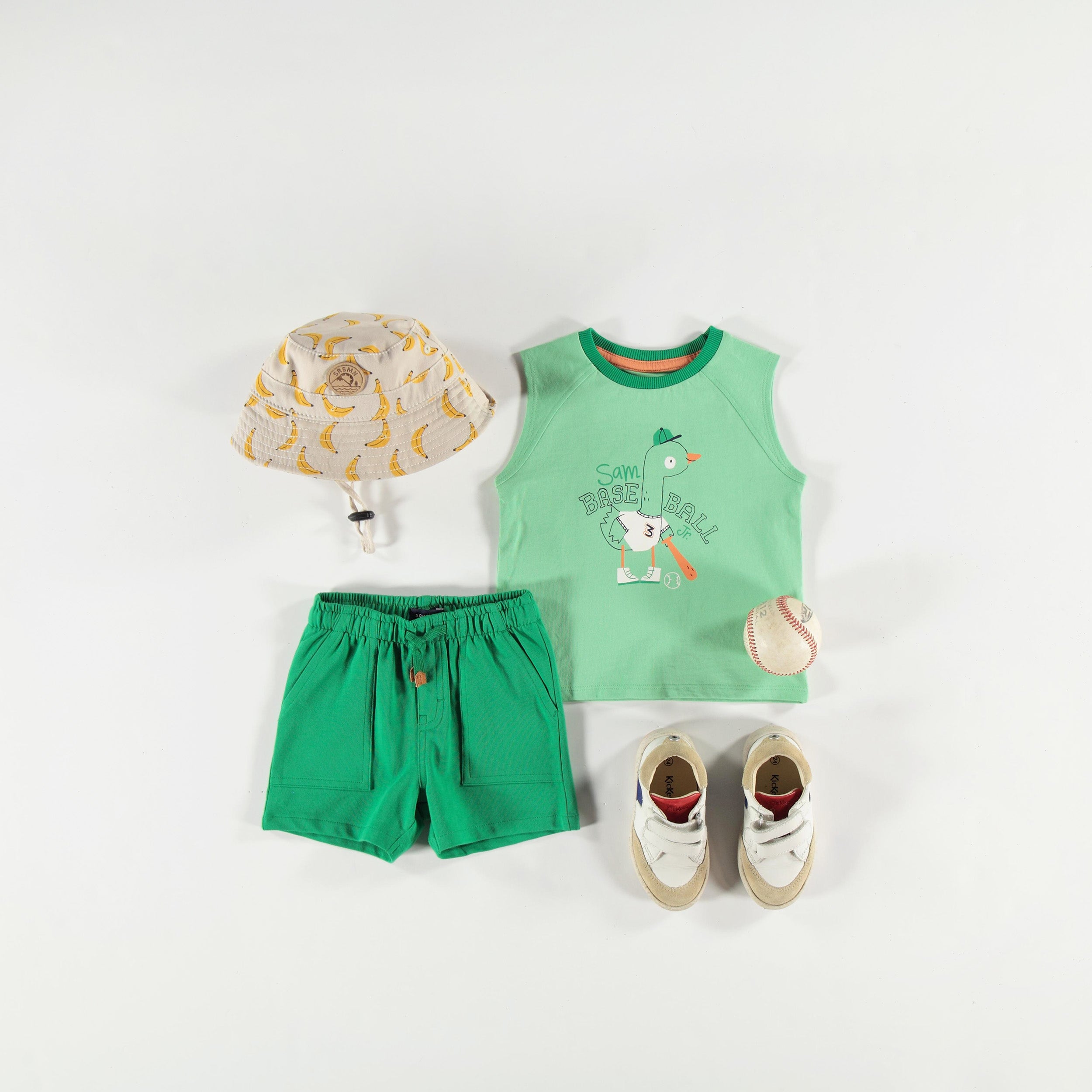 T-shirt sans manches vert avec l’illustration d’un amusant canard joueur de baseball. On y retrouve un col rond contrastant en tricot côtelé. Fabriqué en jersey de coton dans une coupe régulière pour un maximum de confort.