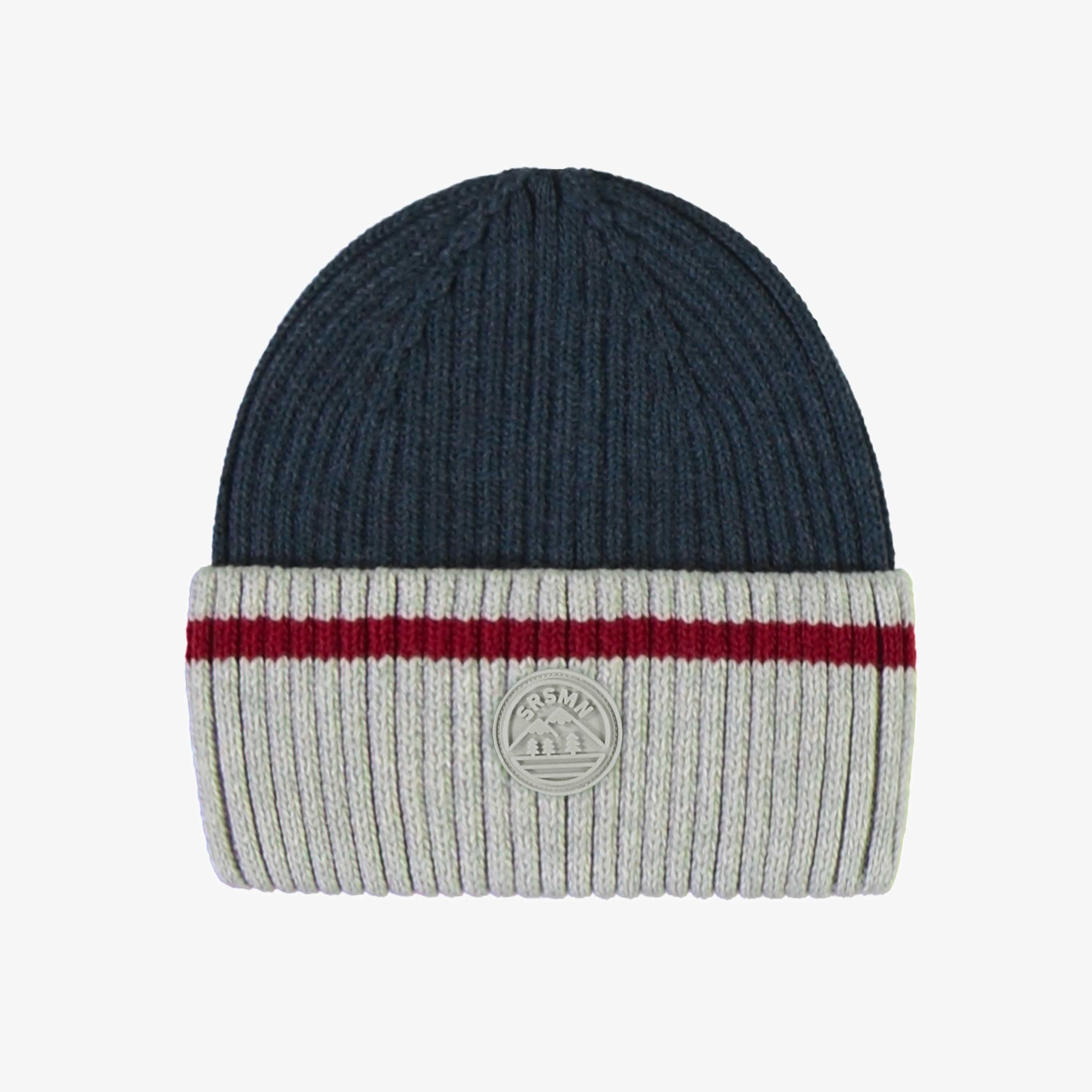 Tuque en tricot marine-gris effet bas de laine, enfant