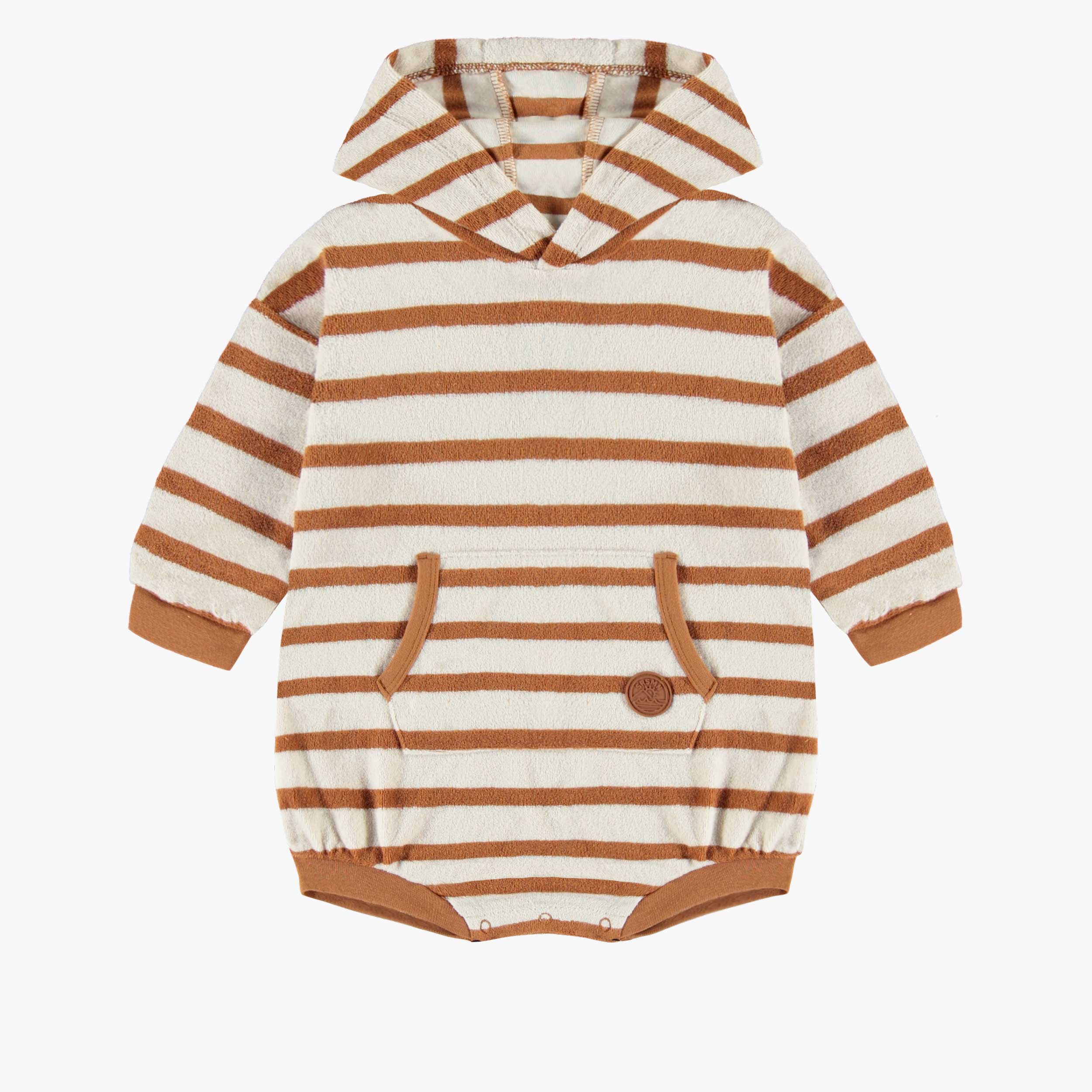 Une-pièce rayée caramel et brun à capuchon en ratine, bébé