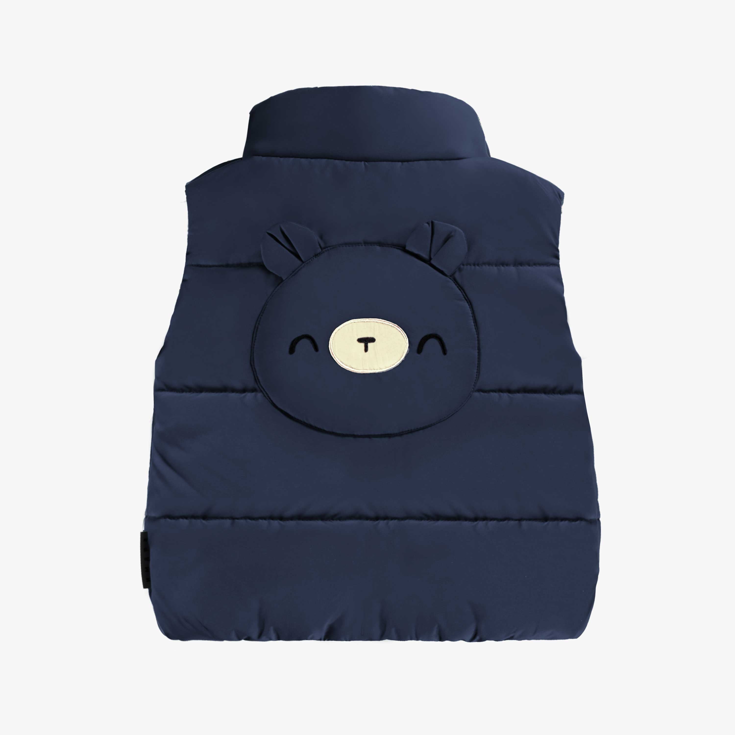 Veste doudoune sans manches, parfaite pour les journées plus fraiches. Munie d’un col montant et d’une fermeture éclair. Le bas de la veste est élastique pour permettre un meilleur ajustement. On adore l’écusson de petit ourson à l’avant et le gros ourson au dos!